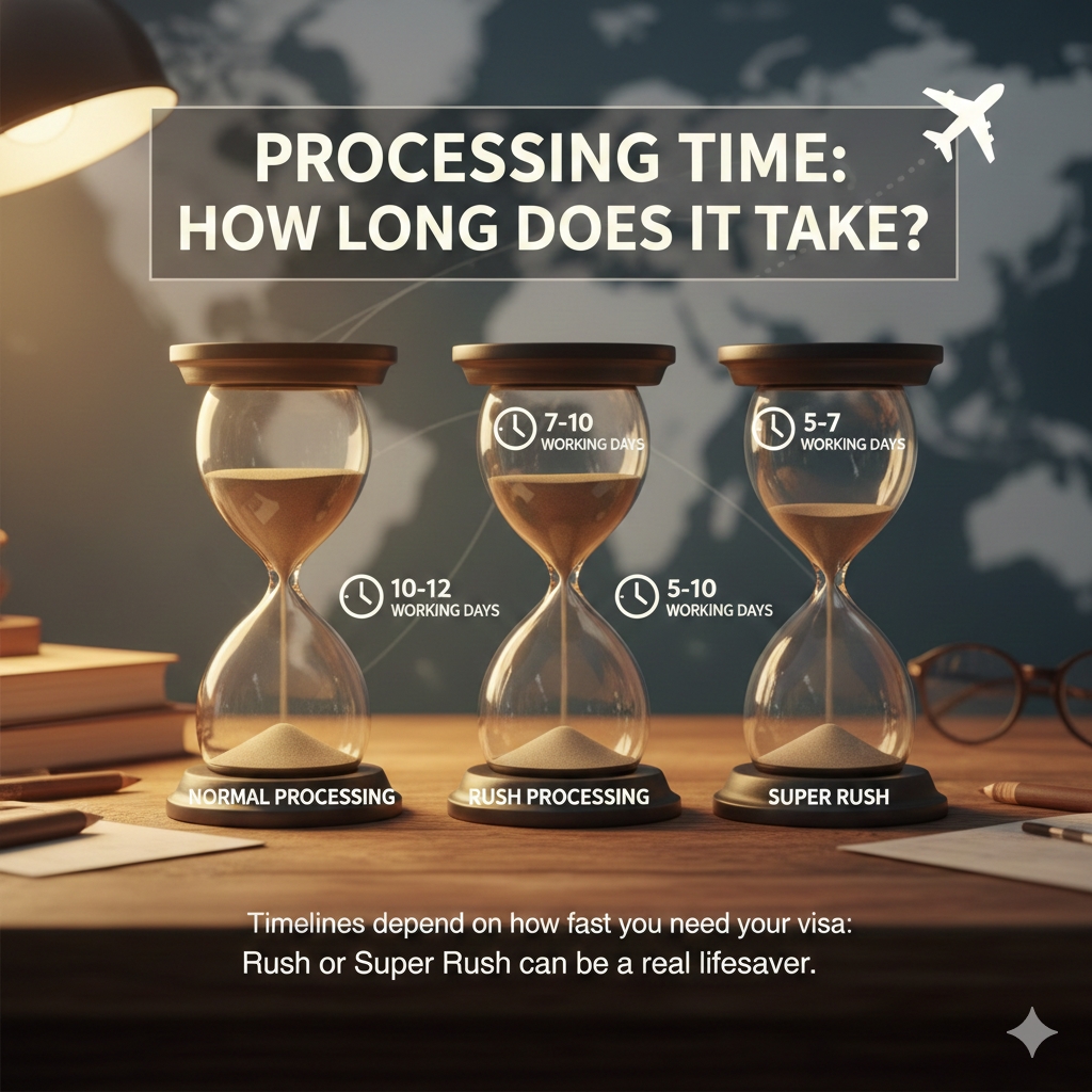 Processing can take anywhere from 5 to 12 working days, depending on whether you choose normal, rush, or super rush options.