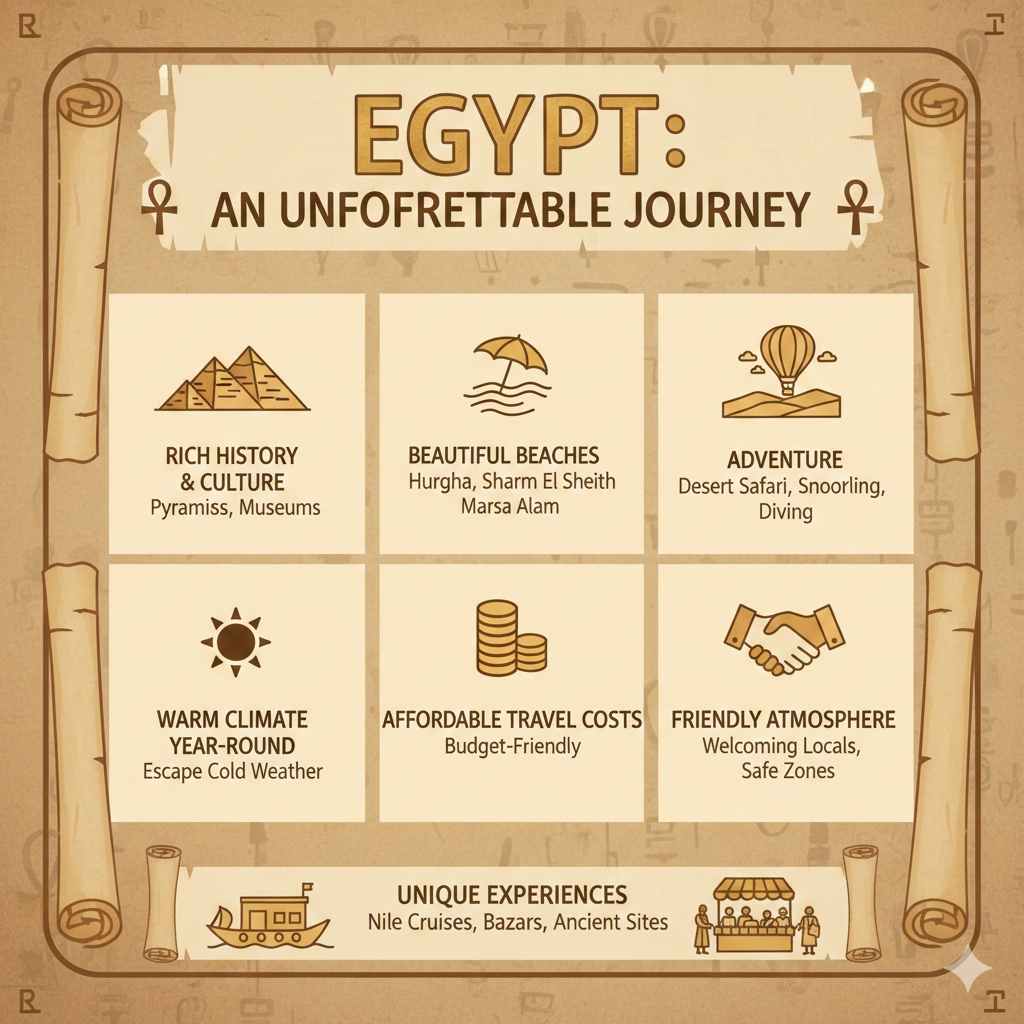 Yes, traveling to Egypt is a wonderful idea, especially for travelers who love history, culture, adventure, and warm weather.