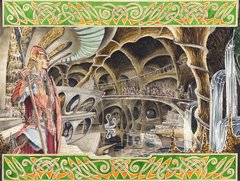 Вхід до печерного палацу оберігала величезна кам’яна брама. Його Тронний зал був просторим, згори його прорізали різноманітні кам’яні колони. На нижніх рівнях розташувалась в’язниця, а ще нижче - королівські комори. Під ними ніс свої води глибинний струмок, яким ельфи транспортувати порожні діжки до Есґароту.