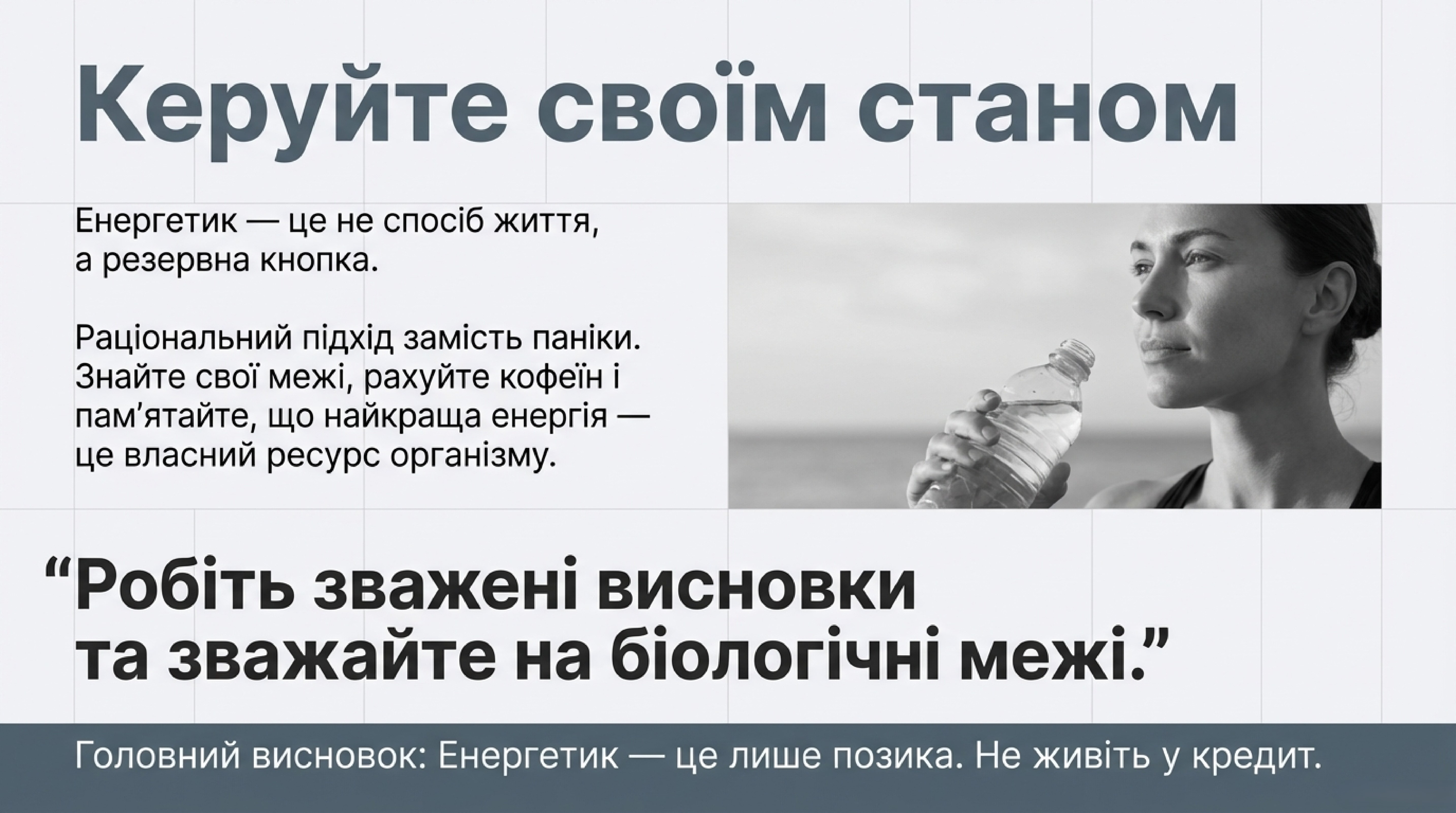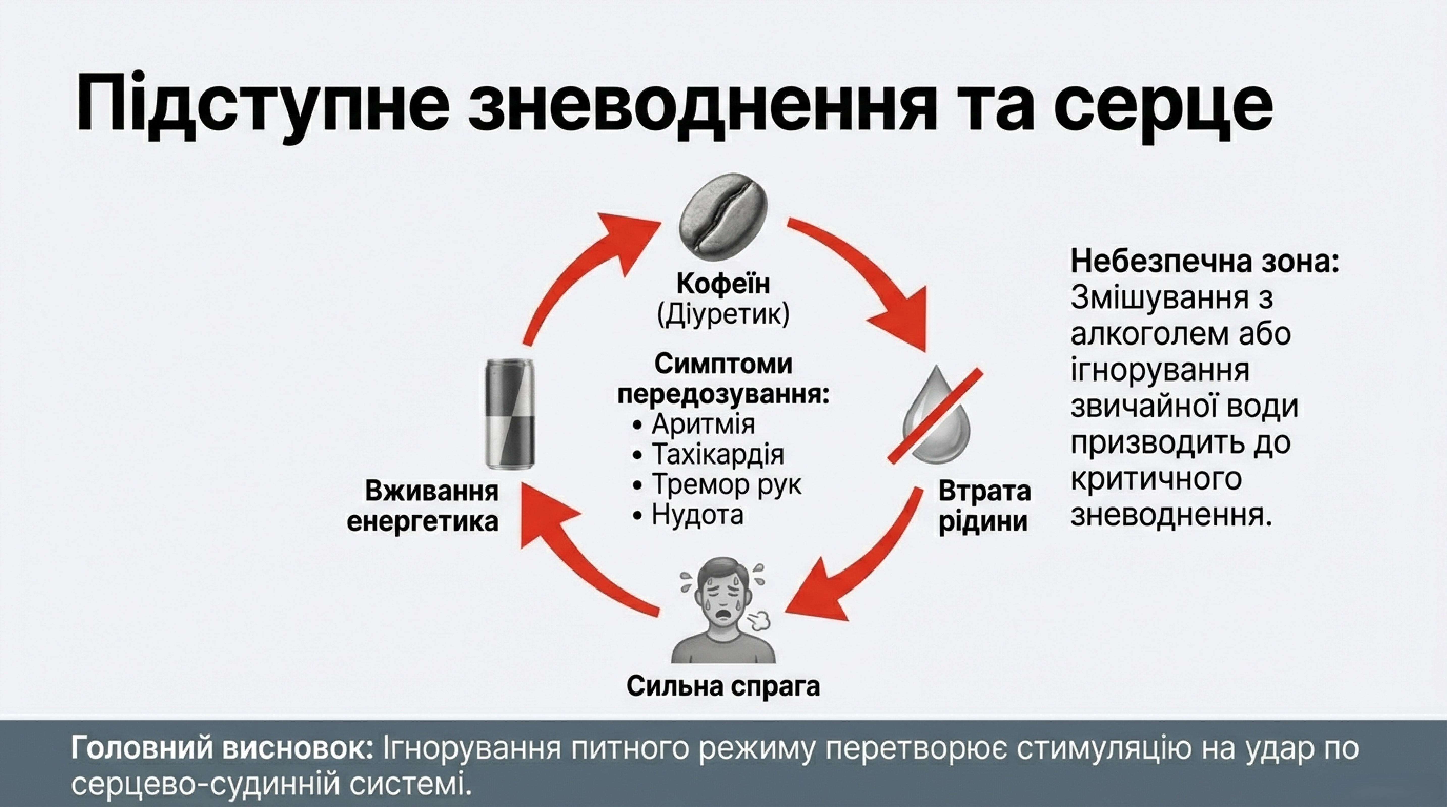 Аналітичне резюме: Енергетик не виробляє енергію — він бере її «в борг» у ваших внутрішніх резервів. Ігнорування питного режиму та культури споживання перетворює цей борг на дефіцит здоров’я.