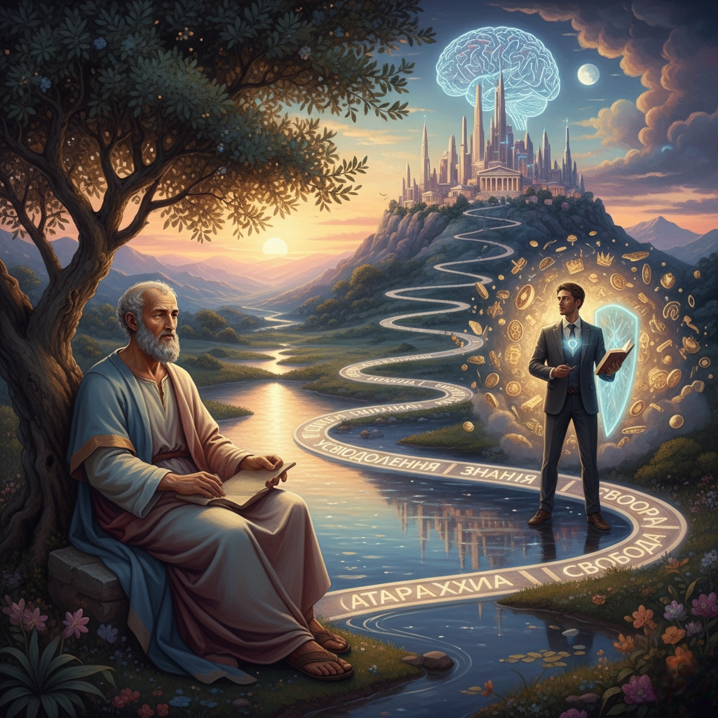 Атарексія: Це спокій душі — відсутність тривоги, страху та душевних хвилювань. Це найвища форма насолоди.