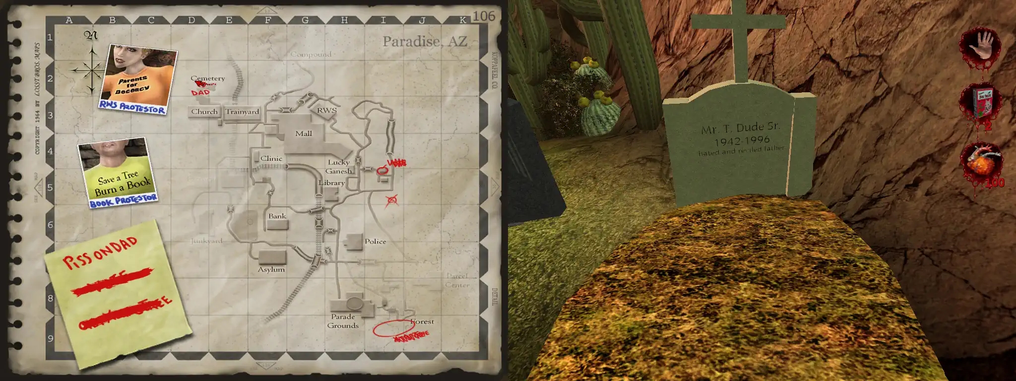 Для просування по сюжету вимагається прямо чи опосередковано використати ляльку вуду, водночас ця дія вбиває одного НІПа. Елементи ворожби і чародійства — це чорна ніша, і не можуть знаходитися в гемплейові гравця, однаково з нехристиянськими релігіями, вони можуть представлятися тільки в антагоністичному ключі. До всього тут є “серце демона”: юзабельний артефакт що приносить гравцеві користь, розширюючи слоти для ітемів, в площині етичного геймінгу неможливо уявити щоб зло приносило користь, це нелогічно і неприпустимо: не можна називати чорне — білим. Також гра має провокаційний візуал: присутнє реалістичне зображення внутрішніх органів, приміром розкрите серце у Moon Lord (схожий ґандж має гра Transistor, там один з фінальних босів це серце (у метродванії Grime частини організму вміщені у декорації оточення)). Ту ж проблему (поганські елементи із позитивним забарвленням) має Minecraft, але його не можна назвати негодящим, він сумнівний. Там в ендгеймі гравець отримує (опціонально) тотем, тримаючи його в руці ГГ набуває певну користь.Alundra (1997): негодяща.