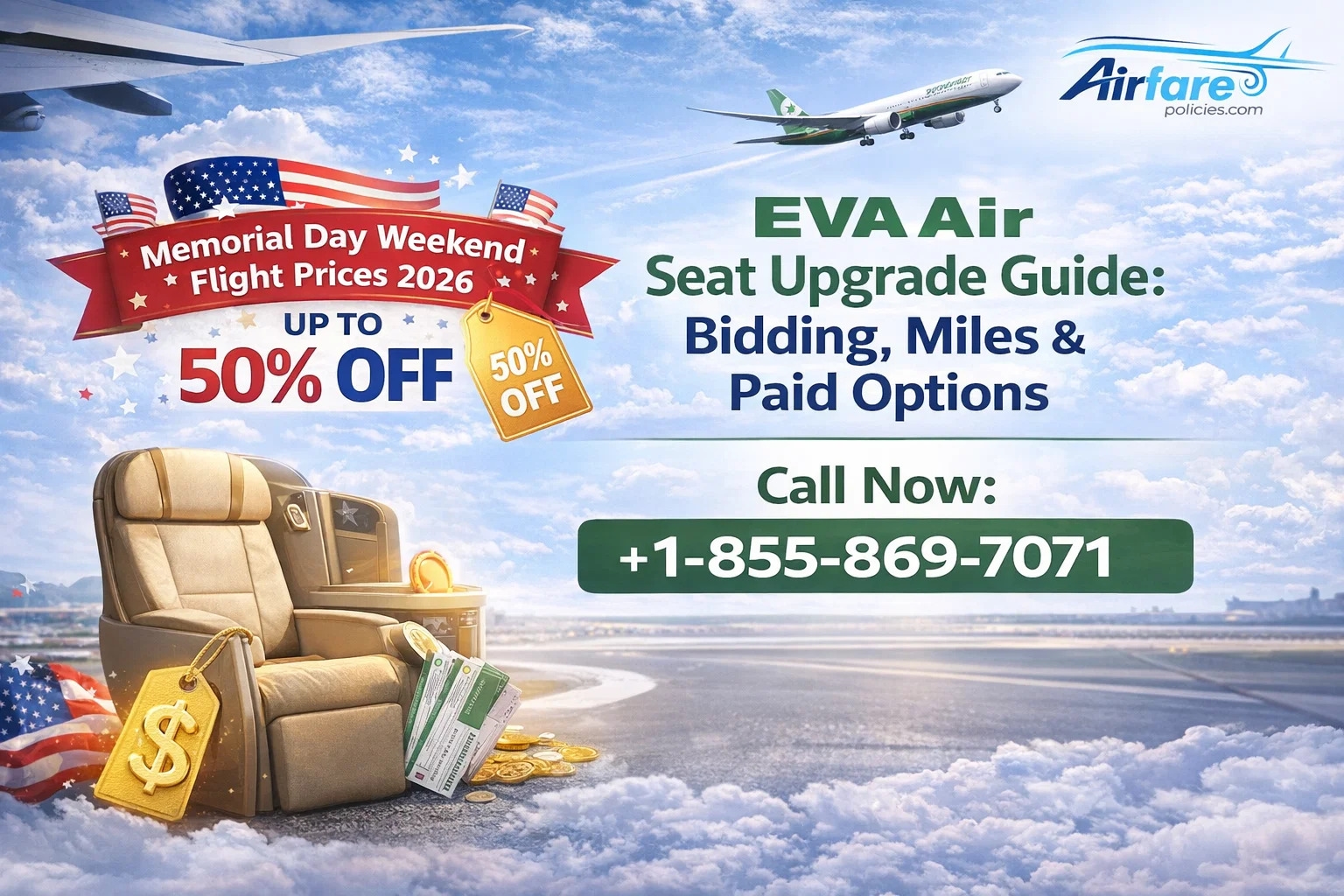 Traveling with comfort and flexibility can make a huge difference, especially on long-haul flights. EVA Air offers a range of seat upgrade options, from bidding to using miles or paying outright, helping travelers enjoy premium cabins without paying full business class fares. Understanding these upgrade pathways, fare conditions, and airline policies can help you plan smarter trips, save money, and even maximize your experience during high-demand periods like Memorial Day Weekend Flight 2026. For real-time assistance and upgrade support, you can contact +1-855-869-7071.
