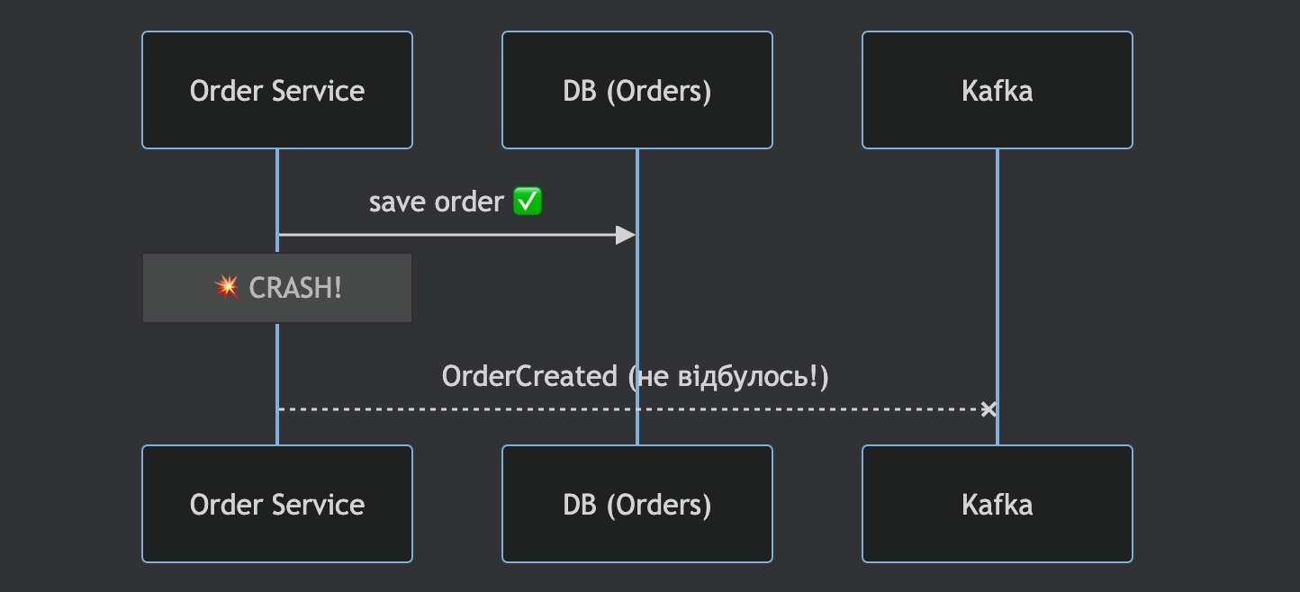 Нагадаю суть: ми маємо дві незалежні системи (DB та Kafka), і нам потрібно записати дані в обидві атомарно.