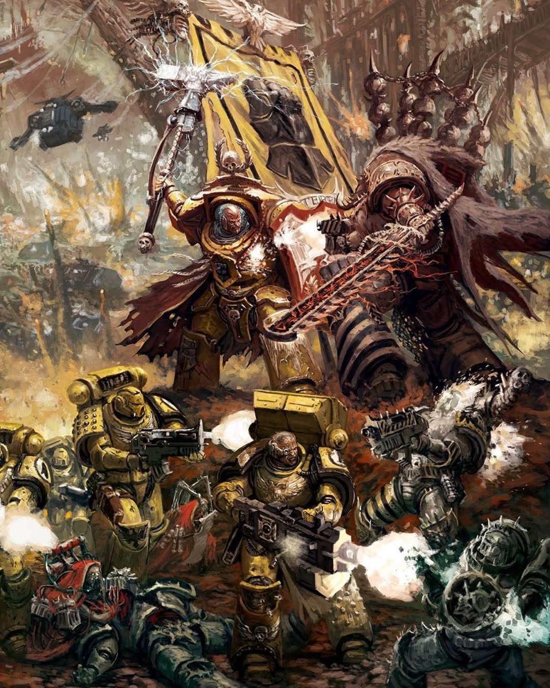 – Утім коли Залізні Воїни таки пробили мури, підкріплення для імперців нарешті прибуло – ударний загін Дарната Лісандера з Імперських Кулаків та невеличкий хрестовий похід Чорних Храмовників під проводом кастеляна Вайлента.