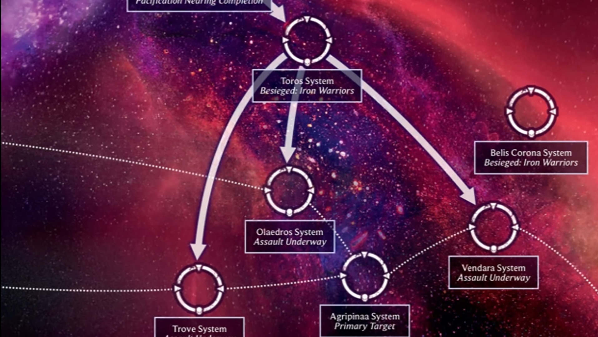 – У Імперіумі він вбачав велетенську фортецю, яку необхідно обережно пробити й захопити, перетворивши тамтешні світи на власні, галактичну мережу фортець, мурів та оборонних споруд із планет, супутників та станцій – так звану Нескінченну Цитадель. І здійснити перший крок примарх вирішив саме з колишнього регіону Брами, звідки потім зручно розширити наступ далі.