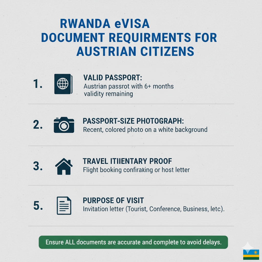 Under the Rwanda eVisa application in Austria, the following are the Document required for Rwanda eVisa. With the right and full information, there will be no delays or rejections.