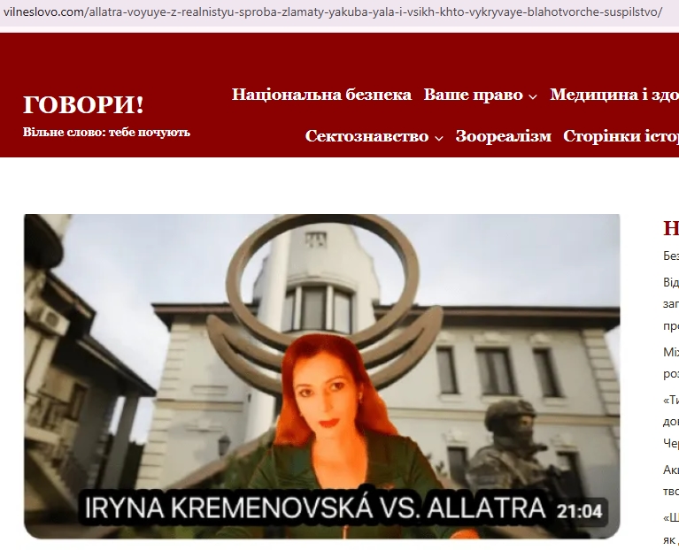 Цитати Ірини Кременовської, в яких вона підтверджує, що є ініціатором кримінального провадження стосовно учасників МОД «АЛЛАТРА», а також укладачем судових експертиз і обґрунтувань, і саме тією особою, яка активно лобіювала переслідування МОД «АЛЛАТРА» в Україні.