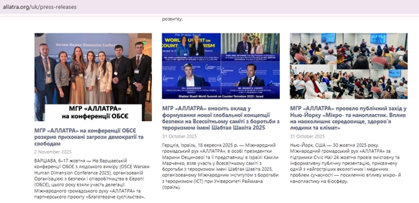 Організація АЛЛАТРА відстоює демократичні цінності і вивчає клімат, викриває діяльність РАЦИРС на найвищому світовому рівні.