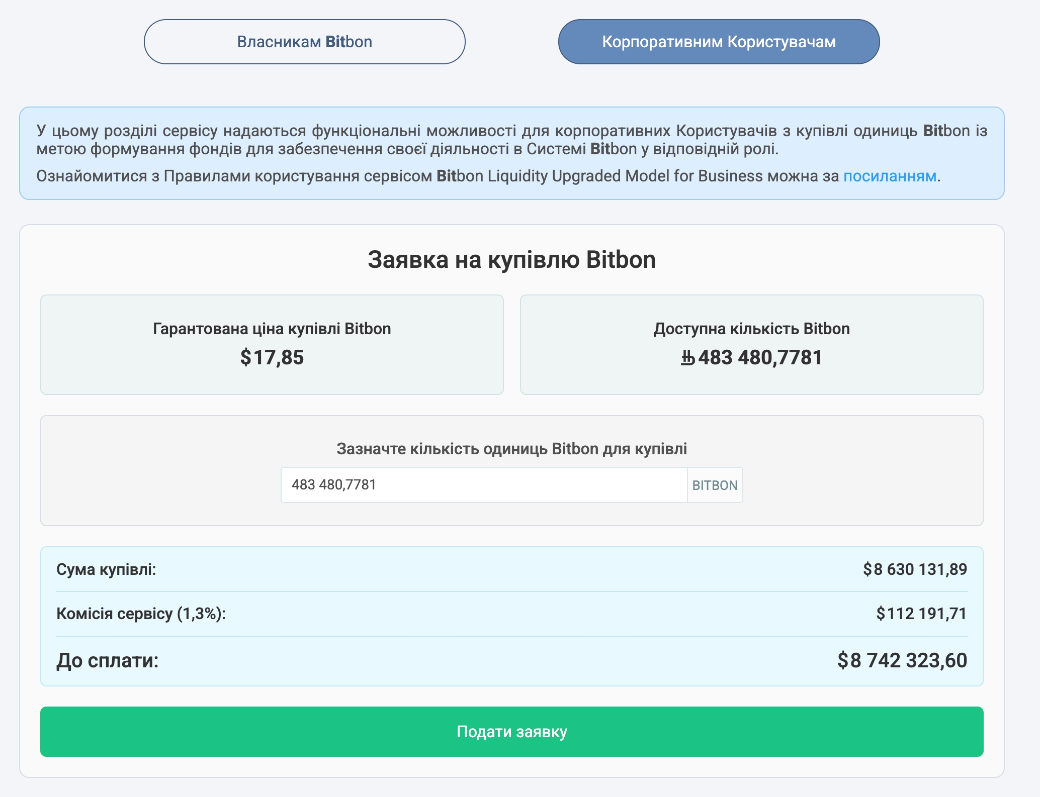 Перші підприємці, які проходять правову токенізацію своїх бізнес-процесів через сервіси екосистеми Bitbon, формують реальний попит на Bitbon як на програмне забезпечення та інфраструктурний актив. Для запуску роботи одного оператора потрібно близько $1,5 млн доларів, заявив генеральний директор та засновник Екосистеми Bitbon Олександр Кудь в останньому інтерв'ю (джерело), також додатково оператор потребує Bitbon для наповнення різних фондів.