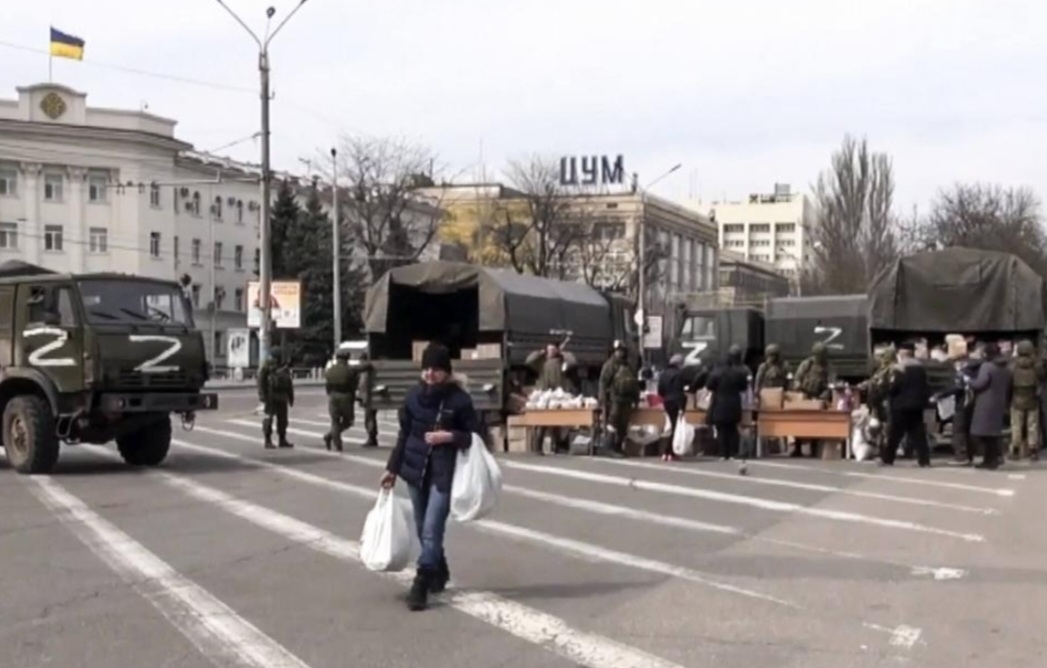 Окрім обшуків та ранкового гімну, окупанти мали ще одну зброю — «гуманітарку». Час від часу в Антонівку заїжджали вантажівки з російськими продуктами. Вони робили з цього картинку для своїх новин: «щедра допомога визволителів».