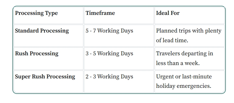 We understand that travel plans can sometimes be last-minute. To accommodate every schedule, there are three distinct processing tiers available for Norwegian applicants: