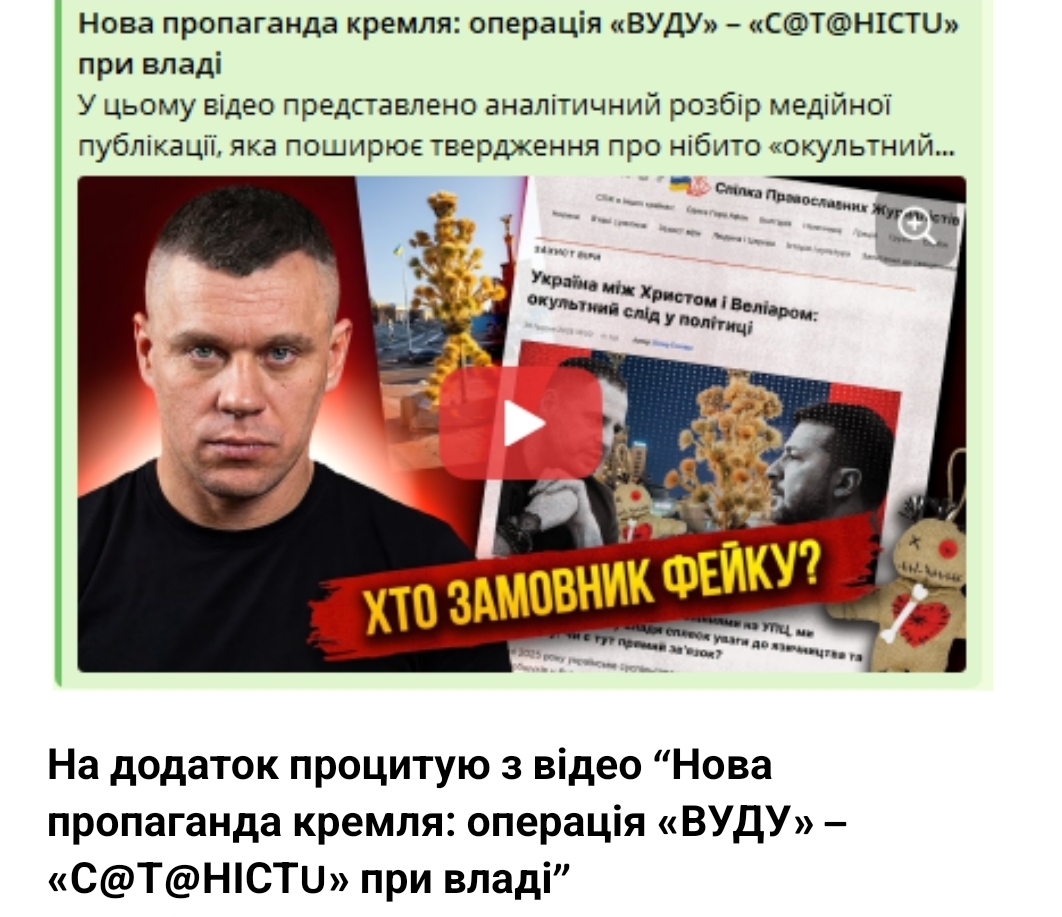 На додаток процитую з відео "Нова пропаганда кремля: операція "ВУДУ" - "С@Т@НІСТИ" при владі" https://www.youtube.com/watch?v=qAnFUWMSyhg