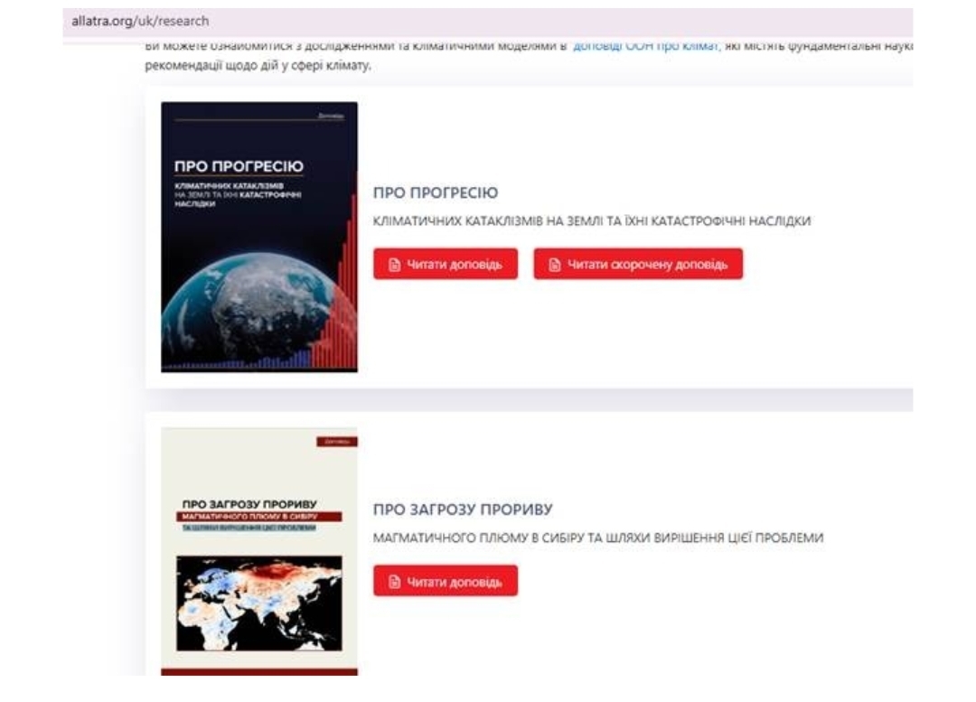 Міжнародний громадський рух "АЛЛАТРА" протягом багатьох років займається дослідженням кліматичних та геодинамічних змін Землі. У 2014 році рух опублікував доповідь про активізацію Сибірського плюму, розташованого на території расєї, яка може призвести до катастрофічних наслідків для всього світу.