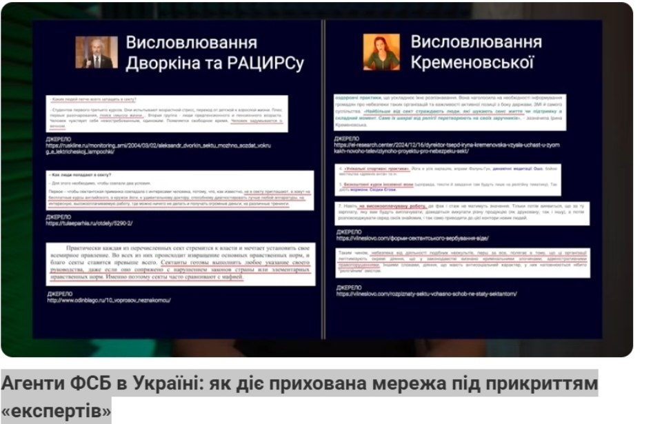 Кременовська позиціонує себе як “експерта з сект”, що вона науковий діяч. Вона така “розумна” жіночка, але так безглуздо спалилася. Каже, що вона не причетна до діяльності антикультової мережі РАЦИРС. Та дивлячись на її “шедеври” що ми бачимо? - Пряма калька від Дворкіна.