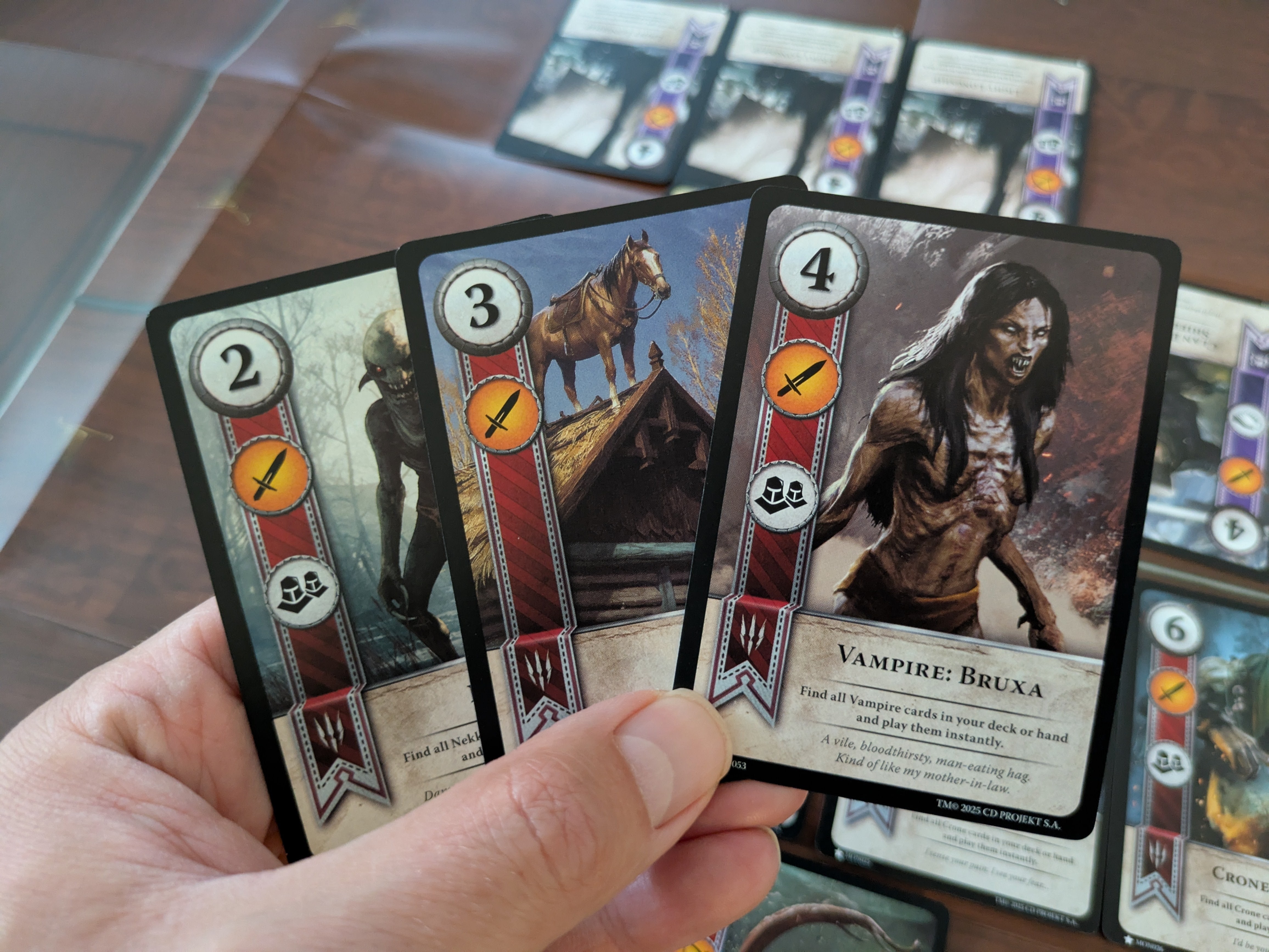 Щоб боротися з цим, гра пропонує карти зі спеціальними здібностями. Але і тут не обійшлося без підводних каменів: спеціальні здібності позначені значком на карті, а не текстом, тож доведеться витратити певний час на їхнє вивчення. Проте, в основному, нічого складного там немає. «Міцний зв’язок» множить силу карти на кількість інших карт із такою ж назвою на вашій стороні. Карти зі здібністю «Шпигун» розігруються на половині поля вашого опонента, додаючи їхню силу до його сторони, але дозволяючи вам натомість взяти дві нові карти. Карта «Медик» дозволяє повернути та розіграти карту зі свого кладовища і так далі.