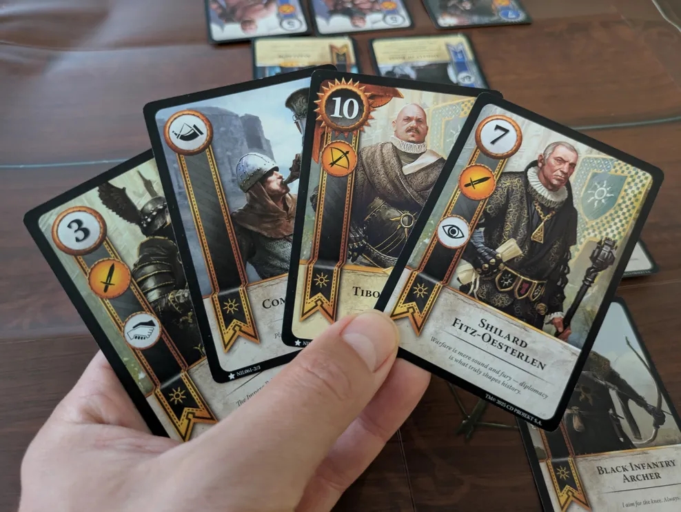 Крім того, стежити за станом гри — виснажливо. Так, у нас є лічильники, щоб відмічати загальну силу в десятках і одиницях, але спершу це досить незручно. Як тільки ви отримуєте такі ефекти, як «Командирський ріг» і «Міцний зв’язок», загальна сила може різко зростати й падати, і немає іншого способу це відзначати, окрім як перераховувати загальну силу при кожній зіграній карті.