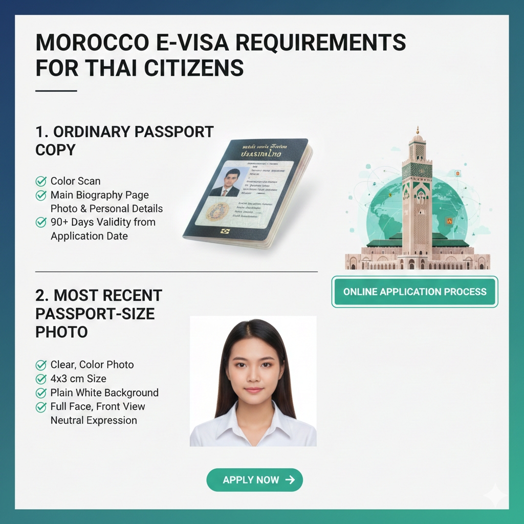 The online application process for citizens of Thailand is designed to be straightforward, requiring only a few essential digital documents. Here is the complete list of documents required for Morocco eVisa , ensuring your application is processed smoothly and without delays.