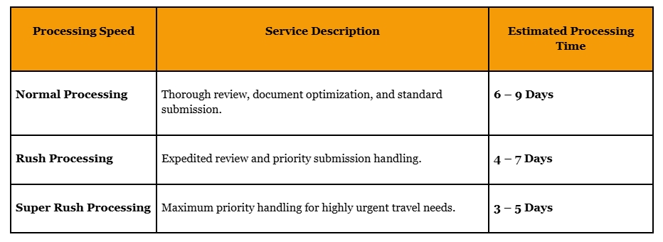 These expedited tiers ensure that any potential delays are minimized through expert oversight, guaranteeing faster turnaround and crucial peace of mind for time-sensitive travel.