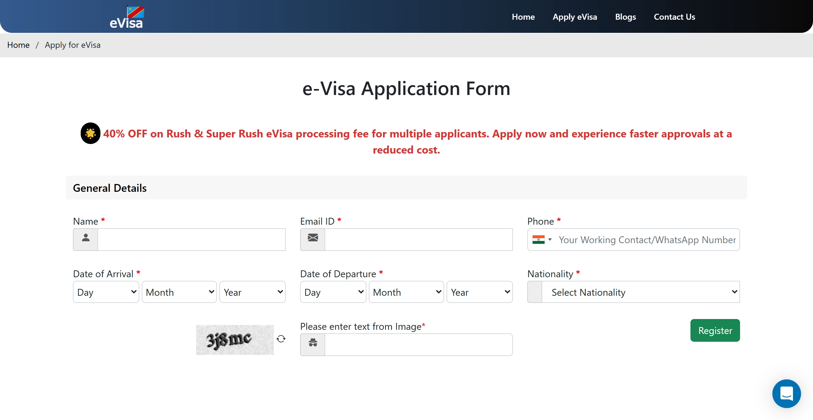 Please fill in all details, like full name, nationality, date of birth, passport and purpose of visit.