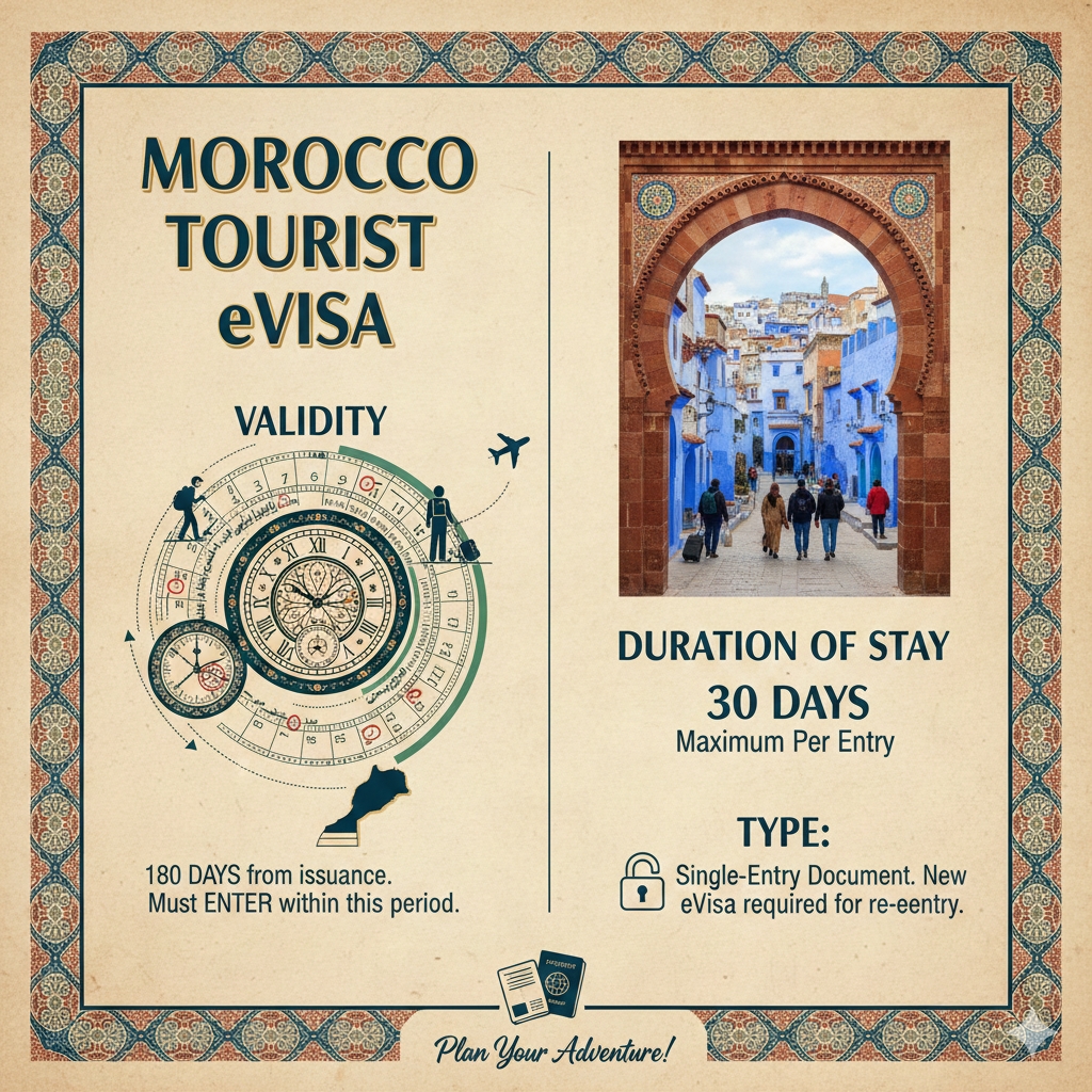 The Morocco eVisa is generally valid for 180 days from the date of its issuance. This is the window during which you must enter Morocco.