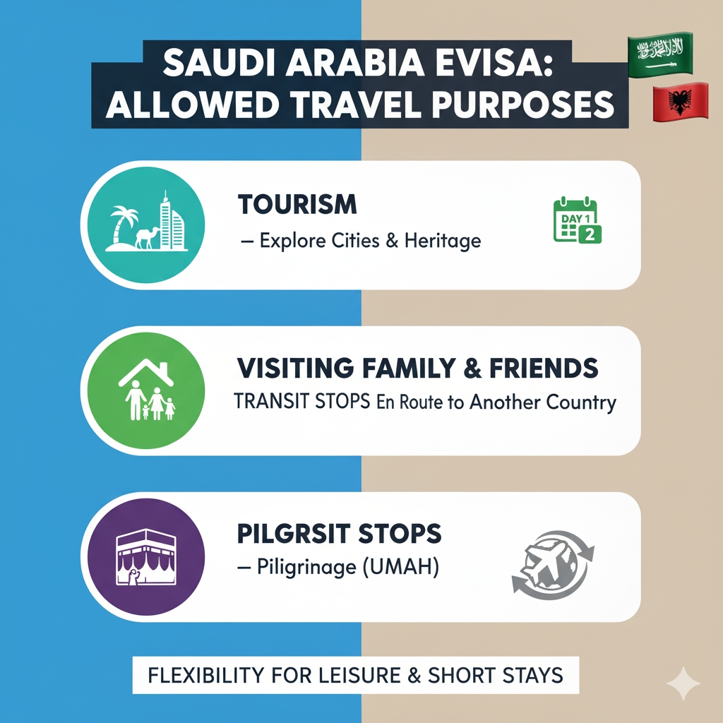 What Travel Purposes Does the Saudi eVisa Allow for Albanian Citizens?
