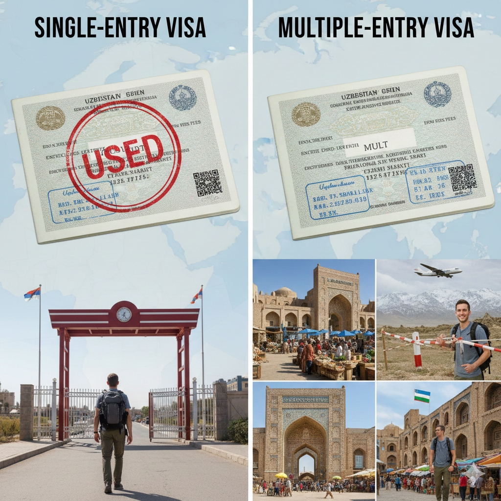 The core distinction between these two visa types lies in one simple rule: how many times you are allowed to cross the border and enter Uzbekistan using the same visa document.