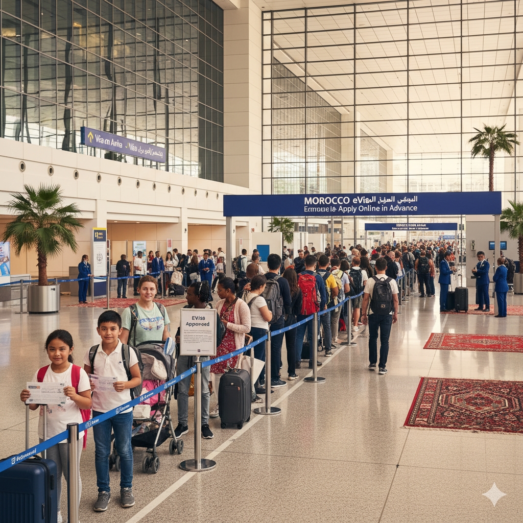 At arrival in Morocco, immigration officers may ask to see not only your eVisa and passport, but also the supporting documents you used in your application (return ticket, accommodation, proof of funds, residence permit/visa from another country if needed).