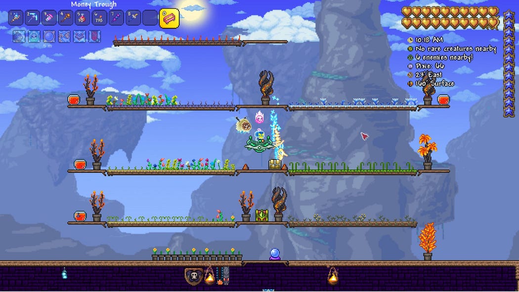 Терарія є зразком і класикою для тих, хто любить відкритий світ, можливості і пригоди. І є свого часу “ключем” до того, щоб відкрити для себе цілий жанр і напрям(про який я буду писати згодом). Піксельна графіка не вимагає багато уваги, все промальовано дуже зрозуміло, гарна музика і баланс між зміною ритму.