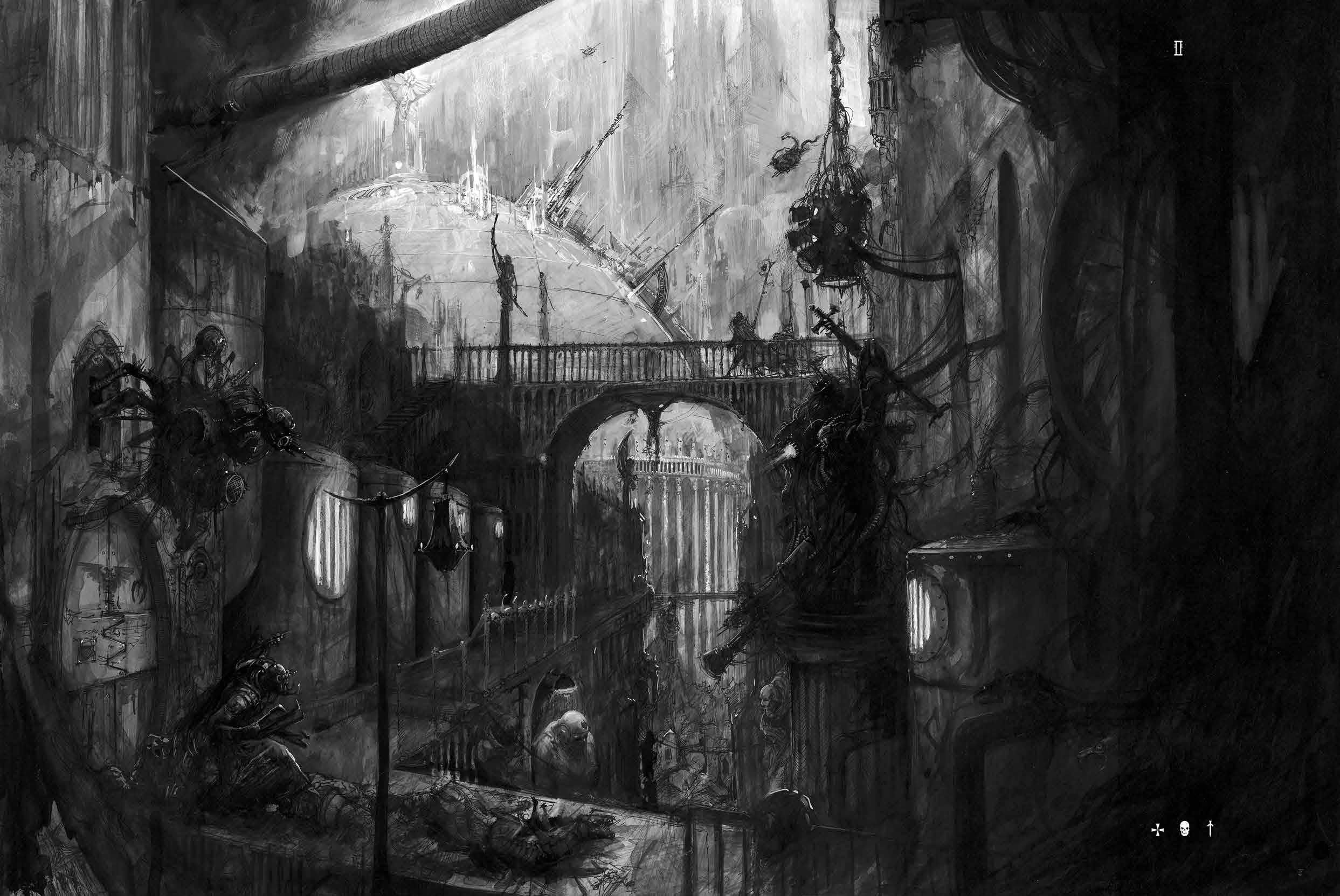 Слова линули з кола вбудованих у тулуб адепта гучномовців. Прилад не даремний, адже обличчя техножерця пронизували чотири трубки: дві у роті та по одній над очима. Крізь сплетіння трубок та шрамів безлічі операцій, Корона оцінював холодний погляд адепта – із химерним сріблястим блиском.