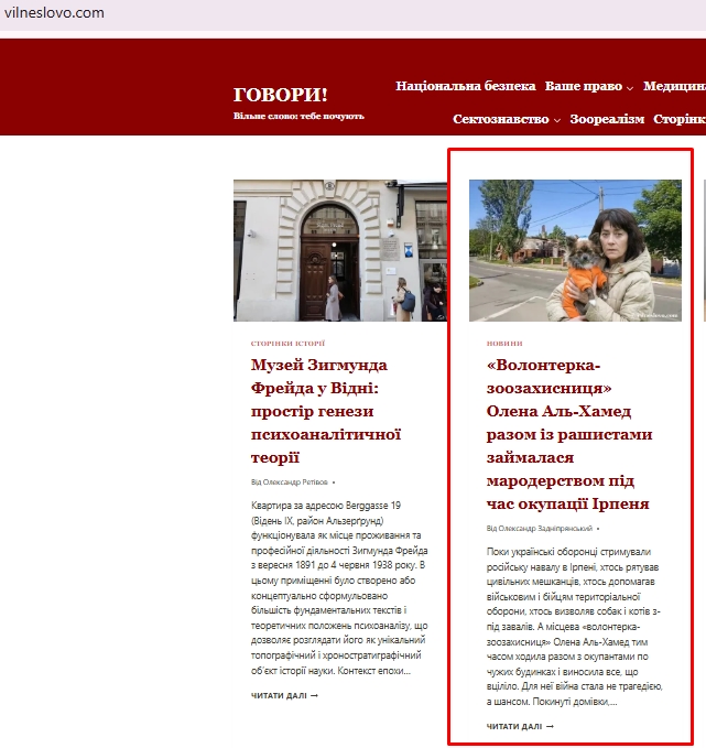 Вона відкриває одночасно у 2017 році три сайти. Два з них - це Вільне слово, де вона є головним редактором, та сайт ЦЕПД, де вони зі Святогором типу займаються дослідженнями. Схема та сама, що і у фсбшної повії Бройде. Самопроголошена експертність, публікація у вигляді наукових чи юридичних аналізів, ярлик “секта”, як універсальна зброя, лобіювання законів подібних до російських.