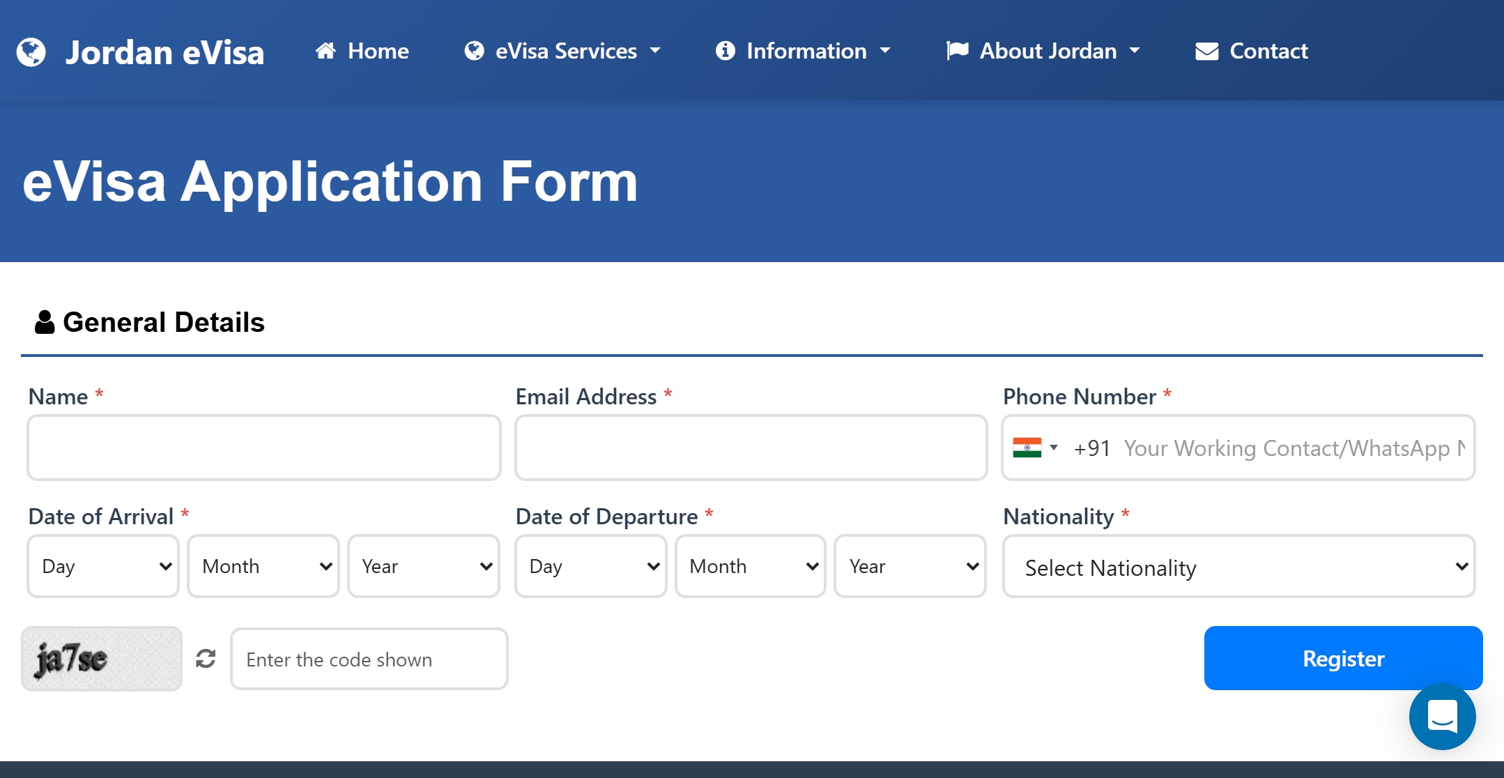 Fill out the online Jordan eVisa application with your personal details, passport information, and travel plans.
