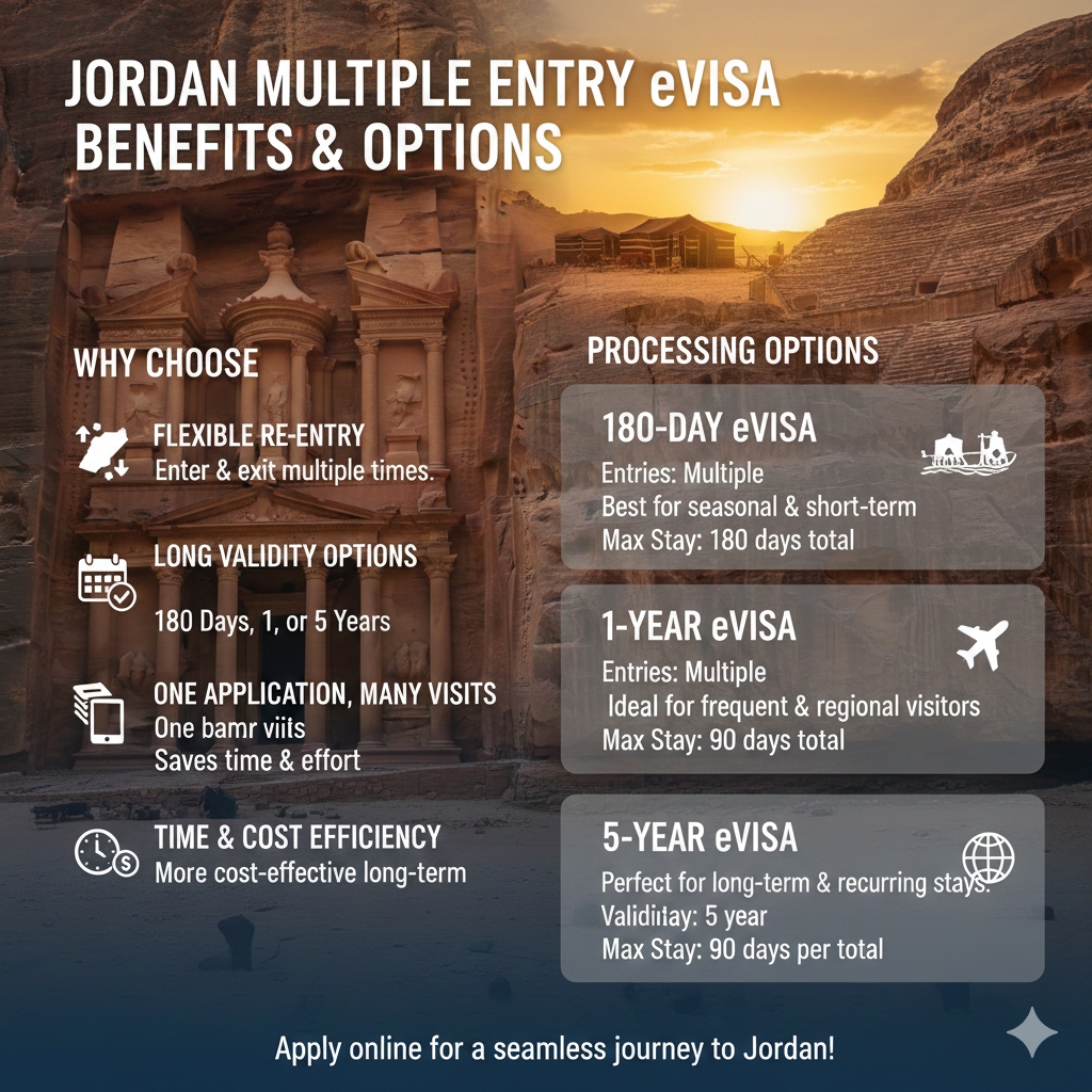 Flexible Re-entry: Allows you to enter and exit Jordan numerous times on a single visa.