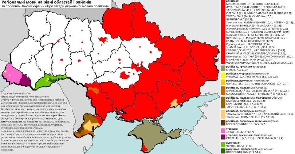 Водночас саме у 2012 р. все таки відбудеться легалізація окремішності русинської мови: Верховна Рада ухвалила Закон «Про засади державної мовної політики» (більше відомий як закон Ківалова-Колесніченка). Цей документ запроваджував поняття «регіональної мови», яка могла використовуватися в офіційному діловодстві нарівні з державною, якщо носії цієї мови становили понад 10% населення адміністративної одиниці. Вже у грудні 2012 р. Закарпатська обласна рада визнала русинську мову регіональною на території області (хоча не зрозуміло, чи була тут виконана вимога щодо 10% мовців регіону), хоч де-факто русинська мова так і не отримала повноцінної підтримки.