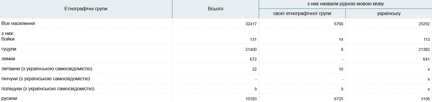 8. Всеукраїнський перепис населення 2001 | Результати | Національний склад населення, мовні ознаки, громадянство | Чисельність осіб окремих етнографічних груп украінського етносу та їх рідна мова:. URL: http://2001.ukrcensus.gov.ua/results/nationality_population/nationality_popul2 (дата звернення: 02.11.2025).