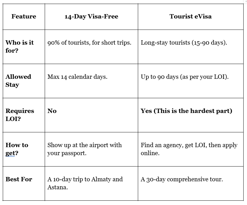 Kazakhstan eVisa vs. 14-Day Visa-Free: Which is for You?