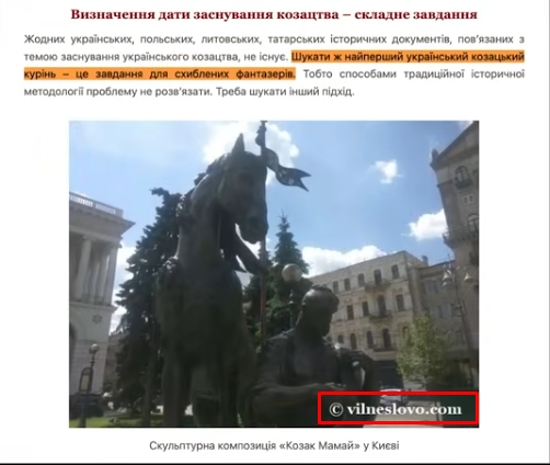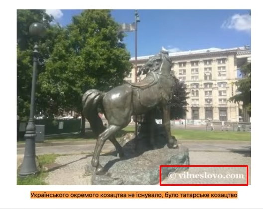 цитата зі скрина: “Українського окремого козацтва не існувало. Було татарське козацтво. А тут українські козаки, як перевертні, набралися всього ворожого татарського.”