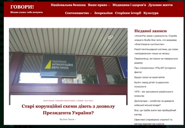 А от почитайте заголовки ось цих статей. Яка асоціація у вас виникла після усього цього? Можливо, любов до Батьківщини, а може бажання посприяти розквітанню України? Щось типу цього не виникло. Ні! Тільки обурення існуючою владою. Отак і працюють таємні агенти російського впливу: критика Президента і діючої влади. Це не єдині наклепи проти України.