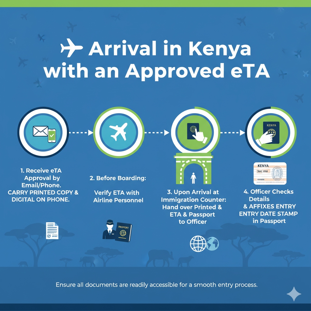 The eTA ensures that Kenyan authorities pre-check your information and travel purposes.
