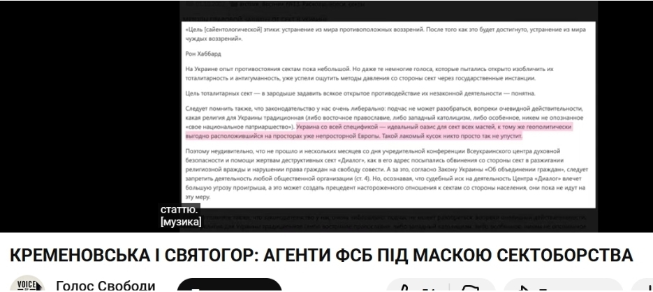 Цитата з відео: «КРЕМЕНОВСЬКА І СВЯТОГОР: АГЕНТИ ФСБ ПІД МАСКОЮ СЕКТОБОРСТВА»