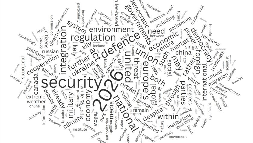 Дивлячись у 2026 рік, експерти попереджають, що зовнішні загрози залишатимуться домінуючими — від ескалації суперництва великих держав до ризику подальшої війни в Україні. Водночас насуваються менш видимі небезпеки, зокрема кліматичні зміни, фінансовий стрес та зниження довіри до демократичних інститутів. Непередбачувані фактори можуть швидко змінити траєкторію розвитку Європи, поглибивши інтеграцію або викривши розбіжності.