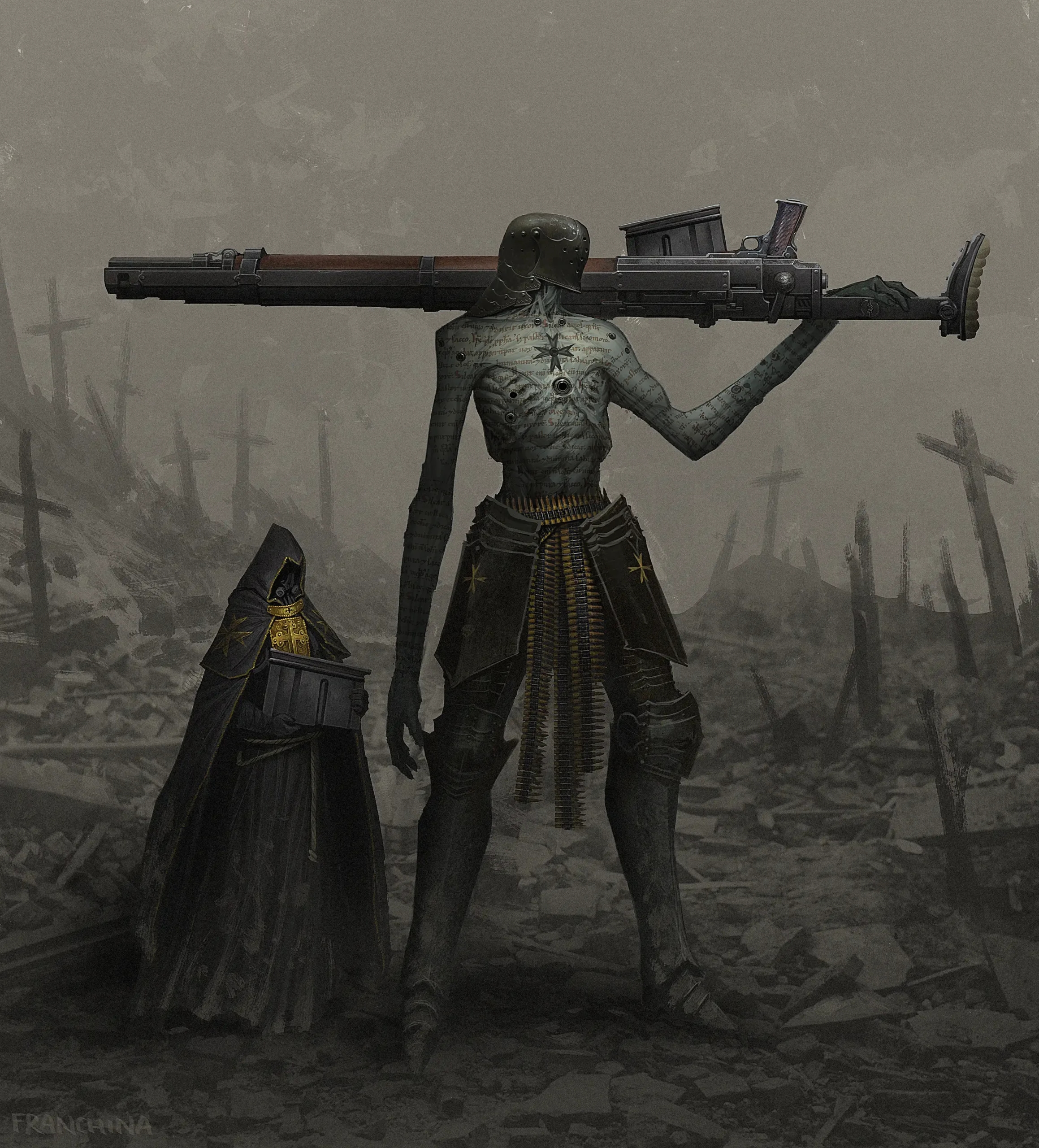 Завдяки металургійному прогресу ливарні Нової Антиохії виробляють титанічні артилерійські системи в понад 300 футів розмахом, на що кузні Пекла відповідають своїми велетенськими машинами смерті. Найбільша з нині знаних – Паща Пекла, завдовжки 666 футів та калібром 1666 міліметрів! Безперестанку артобстріли ряботинням накривають Нічийну Землю, яка нині не більше ніж випалена смуга між силами єретиків та вірян. Саме цим краєм нишпорять загони обидвох сторін у пошуках зброї, боєприпасів, священних реліквій, харчів, обладунків та всього, що стане в пригоді.