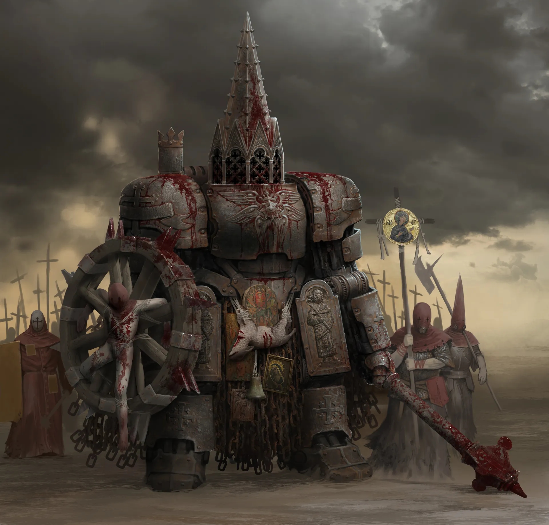Святині анахоретів – металеві велети до п'яти метрів заввишки, живі вівтарі війни, практично невразливі до будь-яких пошкоджень. Появу їхню на полі битви провіщають клуби диму з дизельного двигуна та гучне сурміння молитов. Усередині кожна святиня вкрита шипами та загостреними гаками. Монахові, який нею керує, вони завдають постійних мук, однак йому це велика радість бо страждає він подібно своєму Господу. Ззовні ж святиню прикрашають ікони, священні реліквії та молитовні сувої, звичні тій секті паломників, якій служить анахорет.