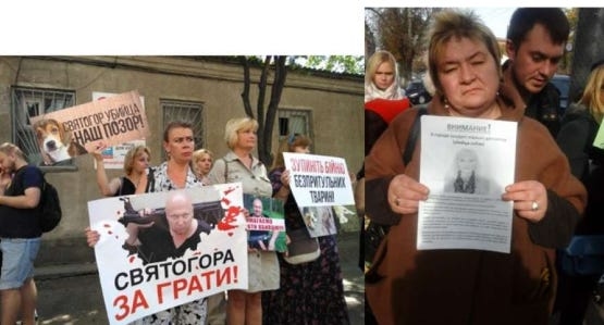 Фото з пікетів киян проти діяльності догхантерів Кременовської і Святогора.