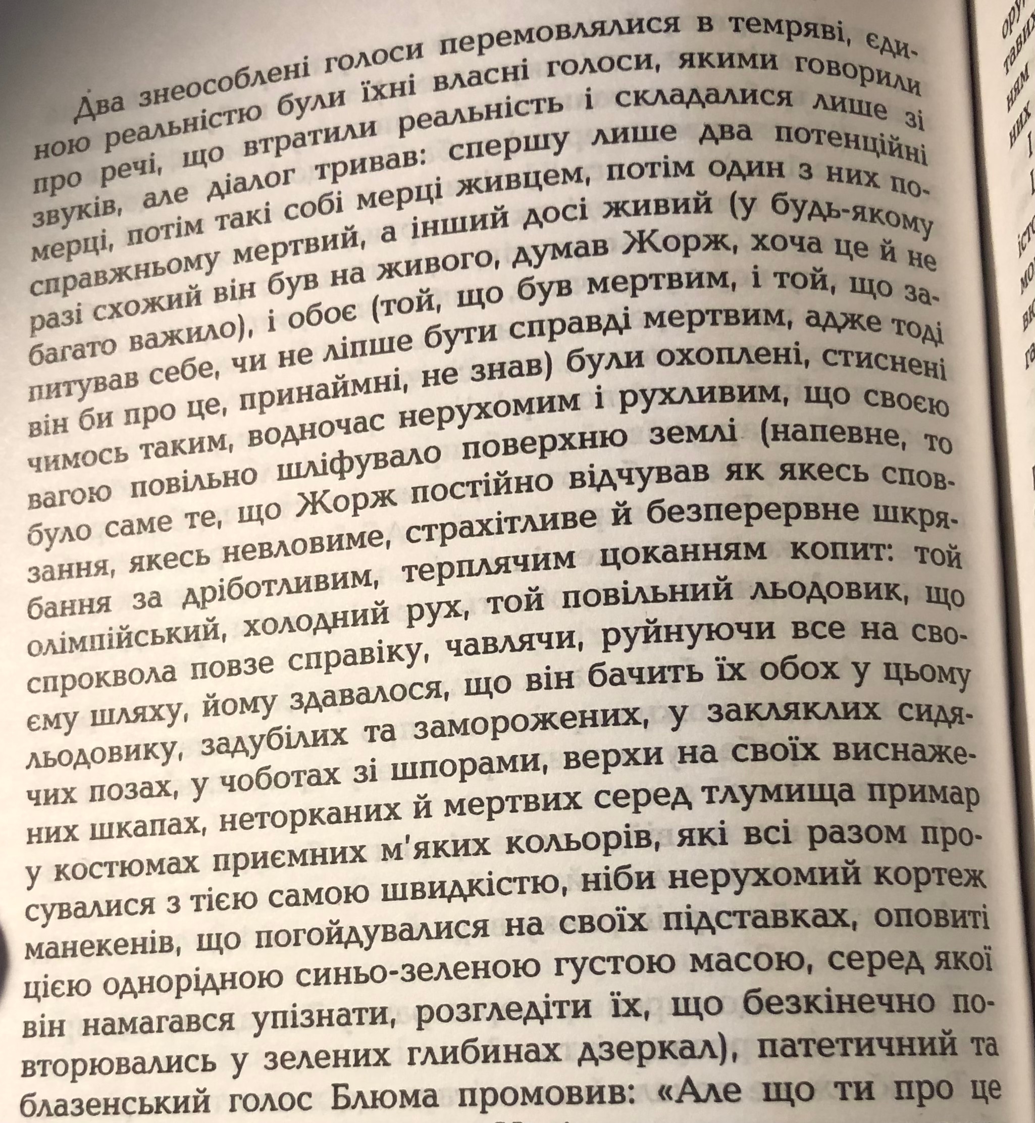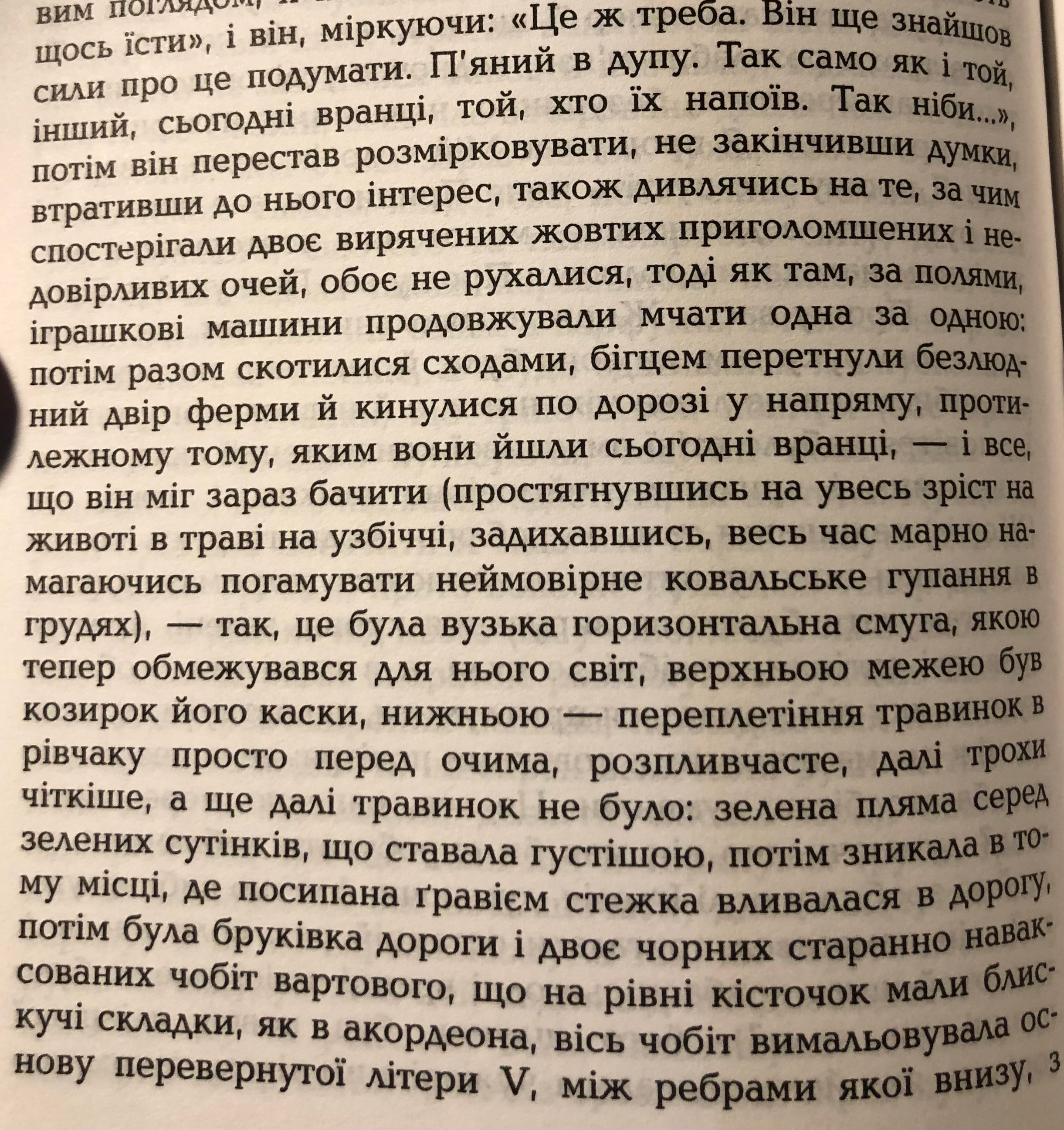 Роман на 219 сторінок. Читав його повільно, сторінок 10-15 було мені під силу за один сеанс, вдумливо і з концентрацією уваги.