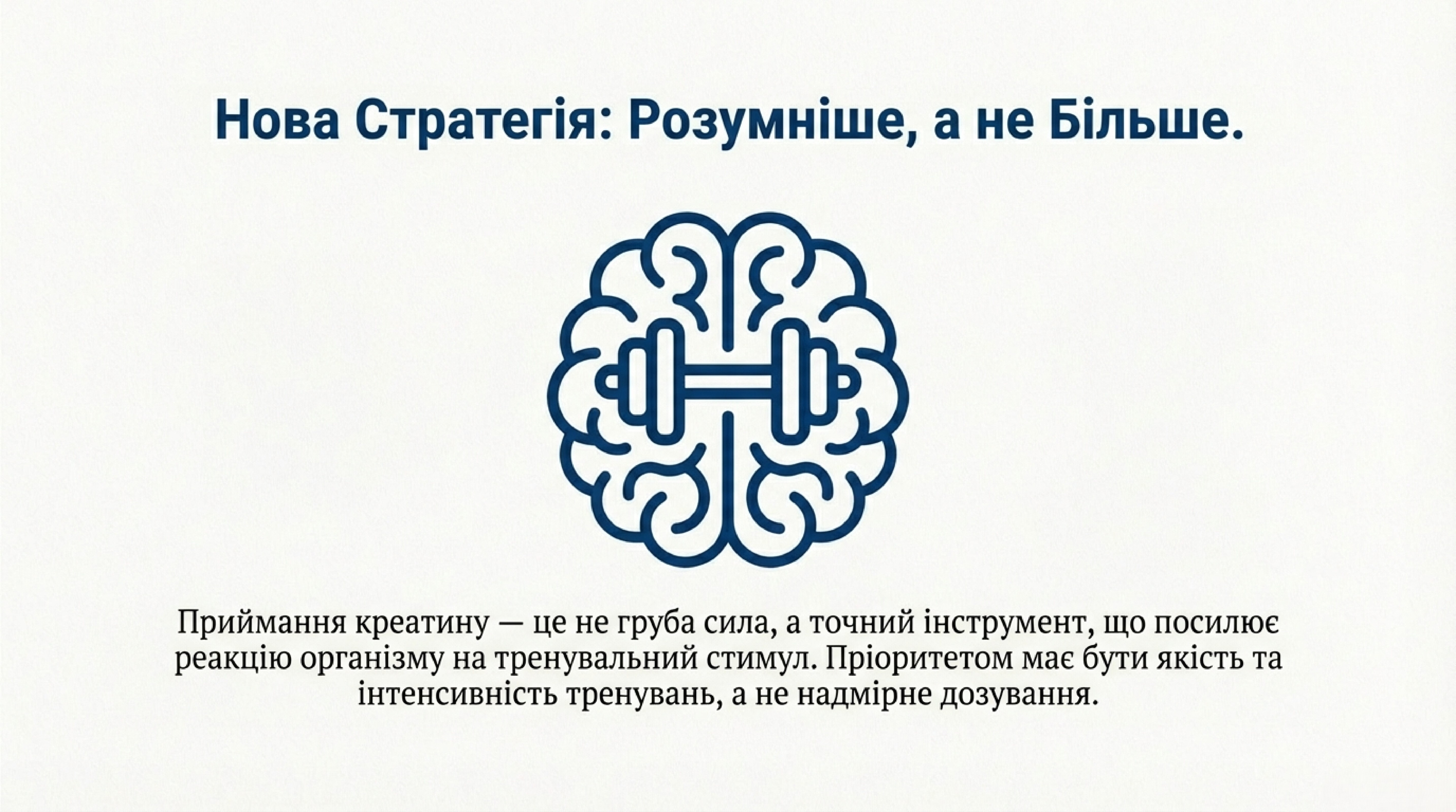 Приймання креатину — це не груба сила, а точний інструмент, що посилює реакцію організму на потужний тренувальний стимул. Доводи свідчать, що підхід «кмітливіше, а не важче» є продуктивнішим: пріоритетом має бути інтенсивність тренувань, а не надмірне дозування.