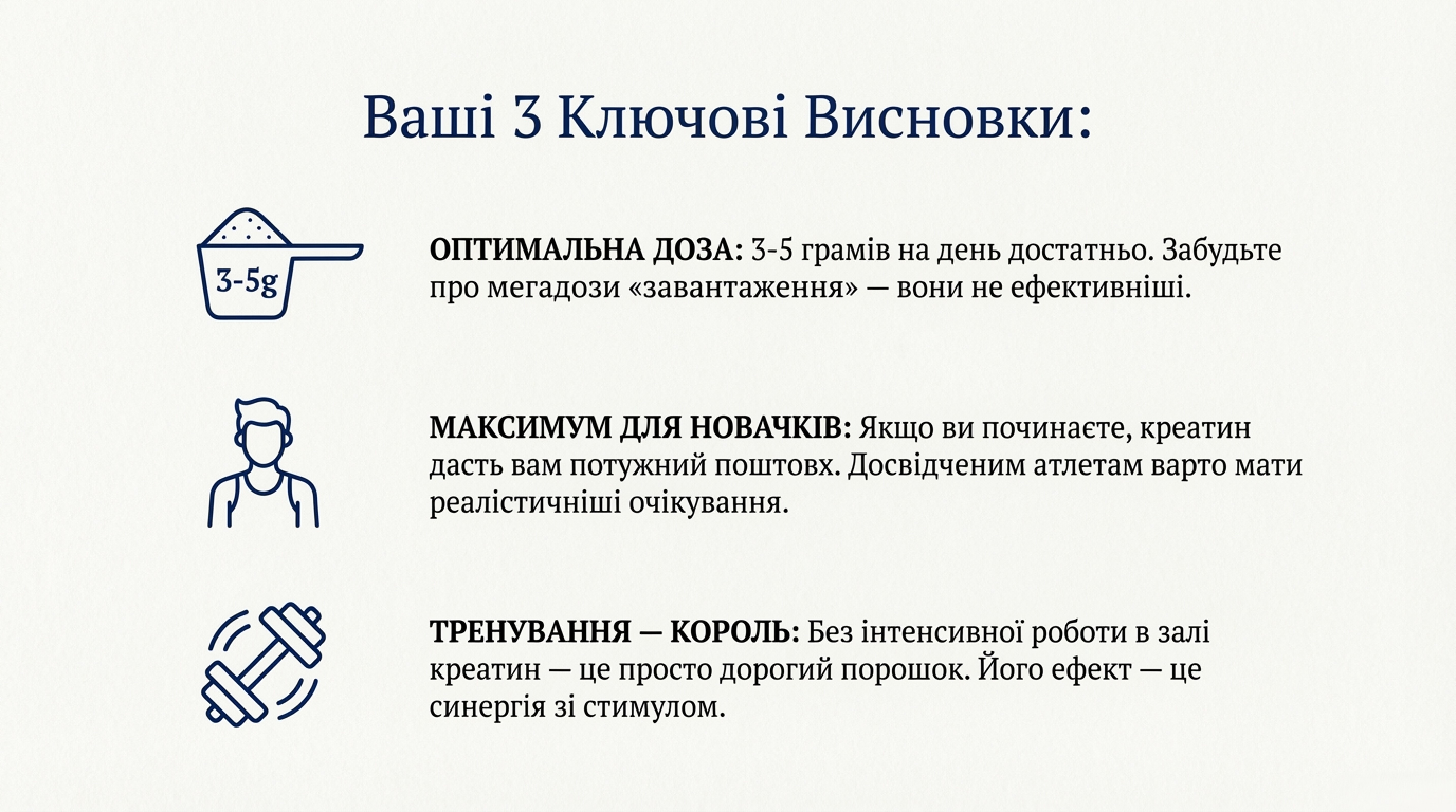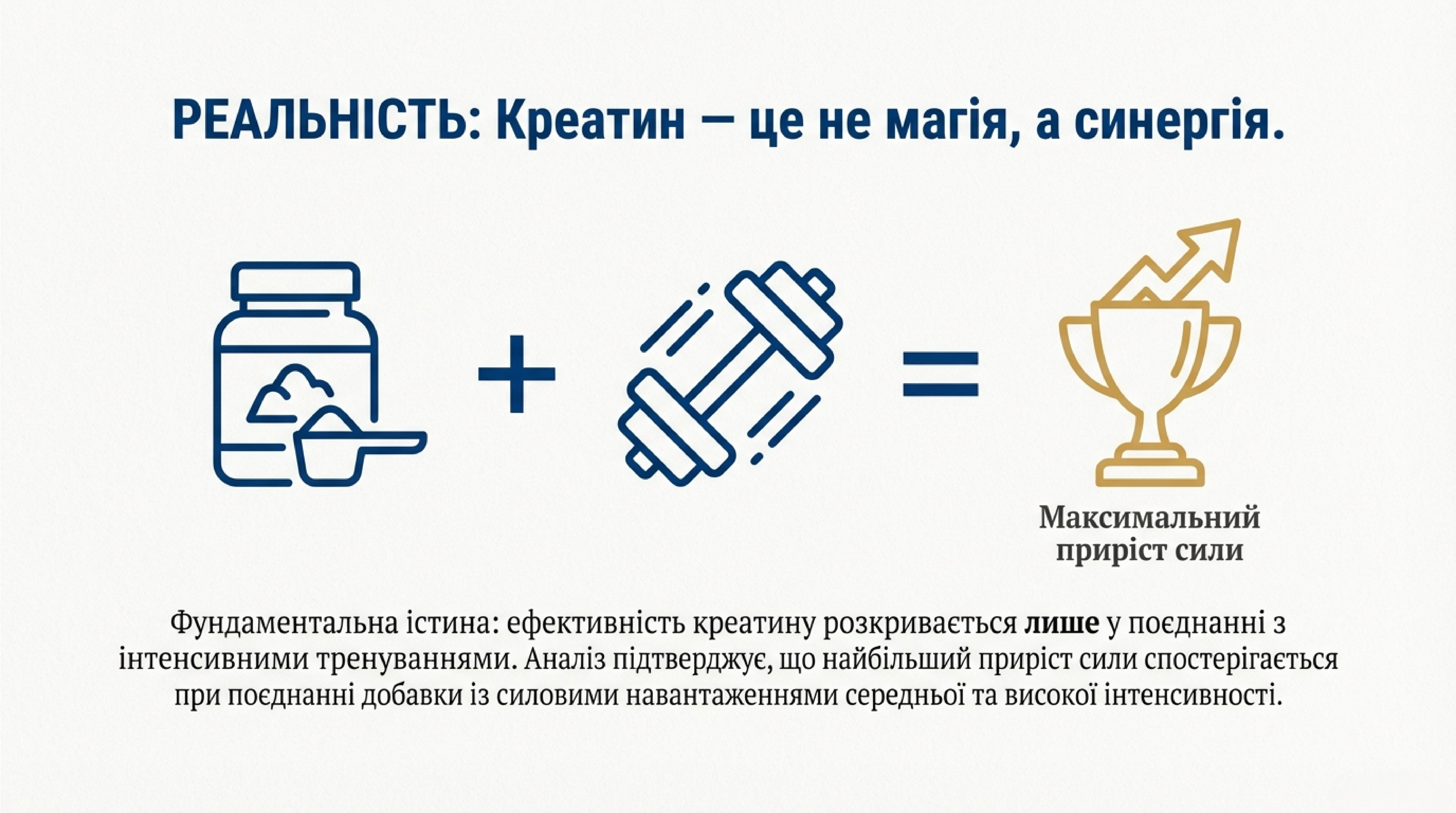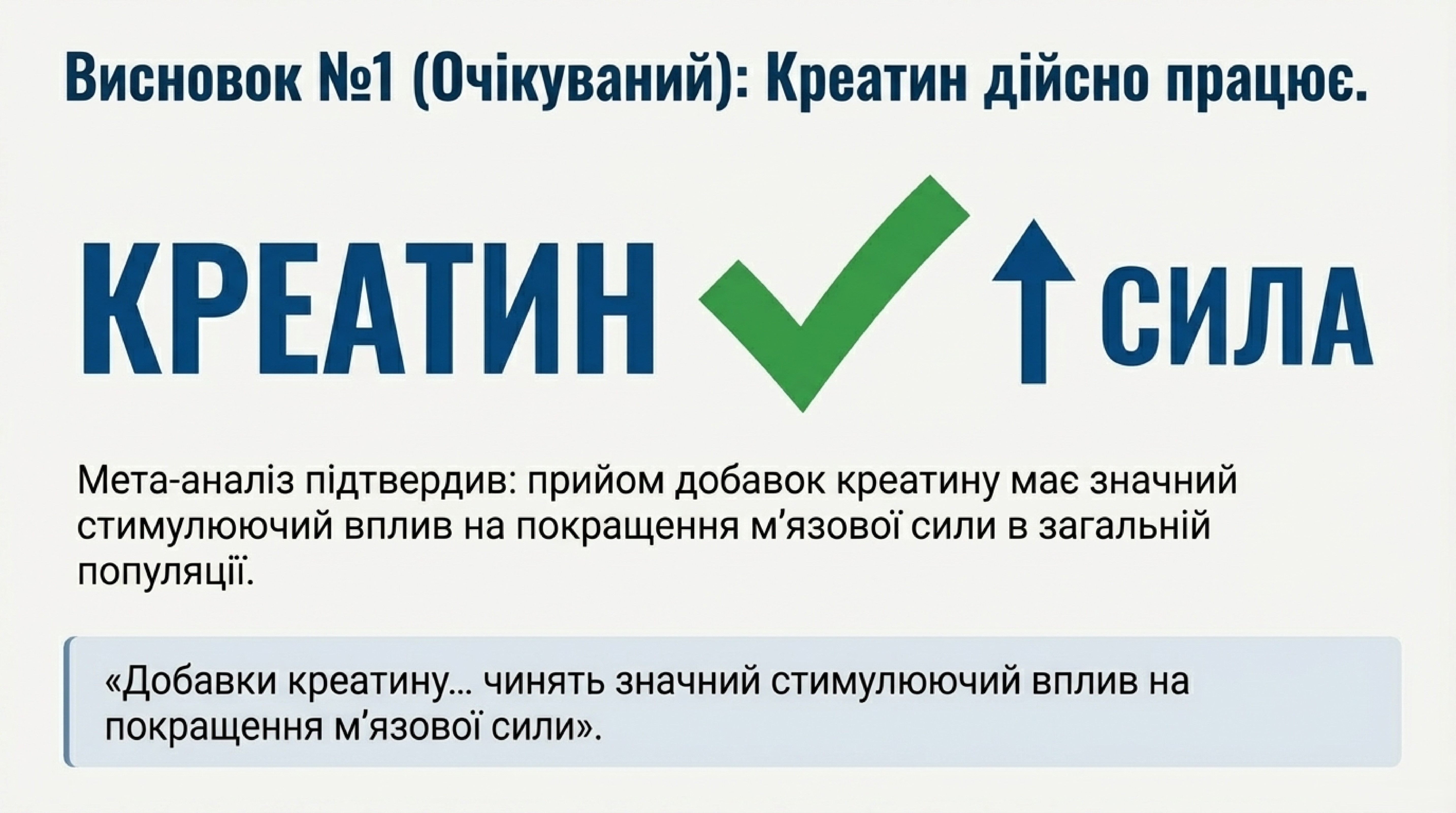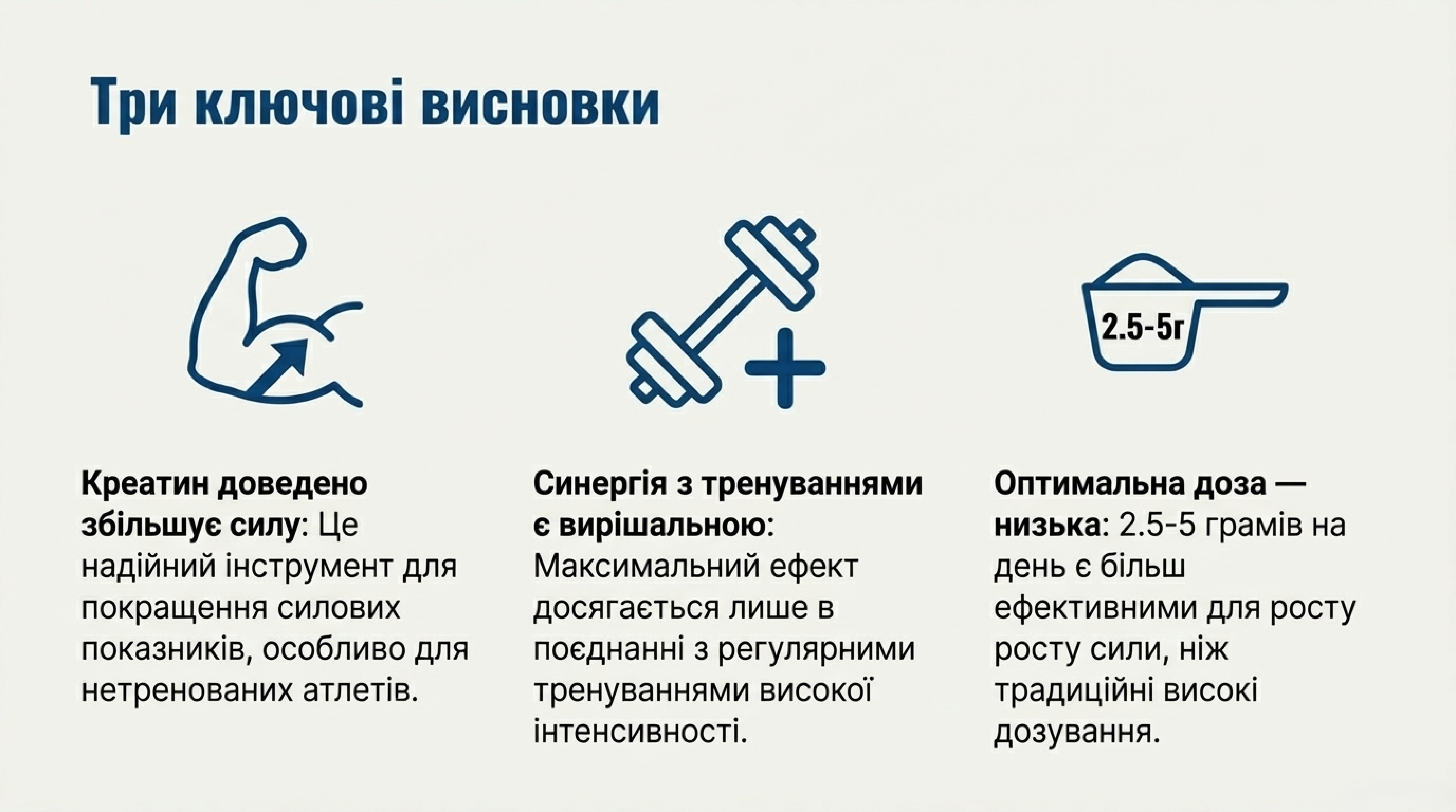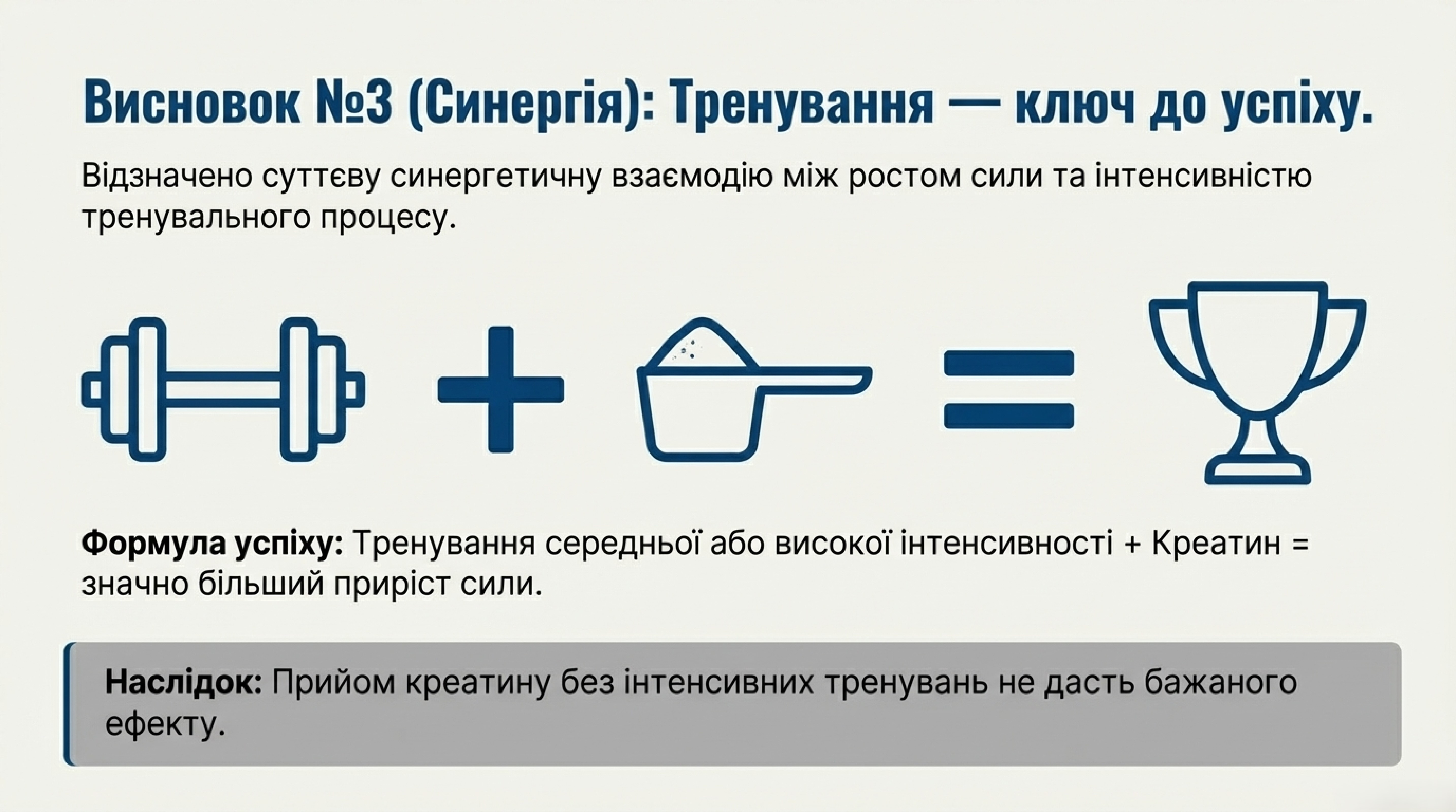 ВИСНОВОК №3: Креатин — не магія, а синергія з тренуваннями