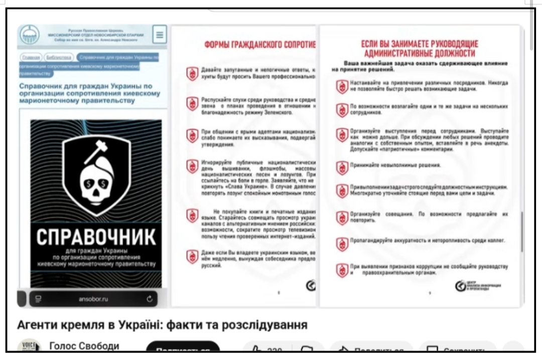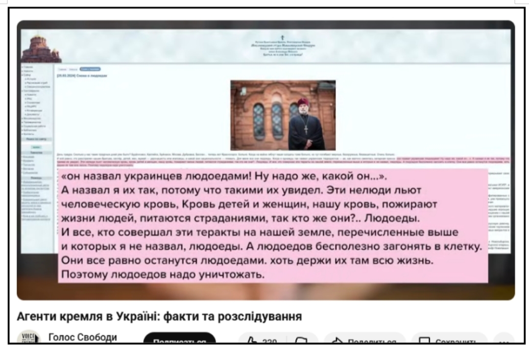 Людина, яка має хрест на грудях і медалі на рясі, публікує тексти, які використовують на фронтах, як ідеологічне обґрунтування вбивства. На офіційному сайті місіонерського відділу новосибірської єпархії він опублікував інструкцію для громадян України, де прямо описується, як саботувати роботу української влади, зливати інформацію в рф і дестабілізувати українське суспільство.