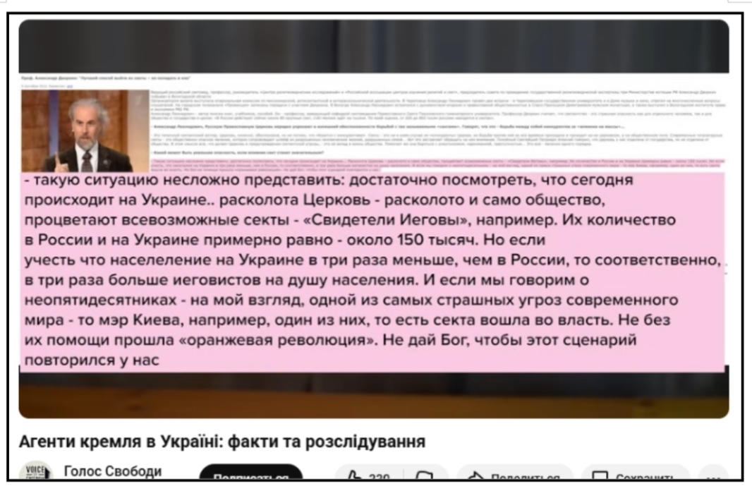 У своїх книгах і лекціях Олександр #Дворкін поширює думку, що саєнтологія, свідки Єгови, мармони та п'ятидесятники - це інструменти заходу, створення для знищення України і росії.