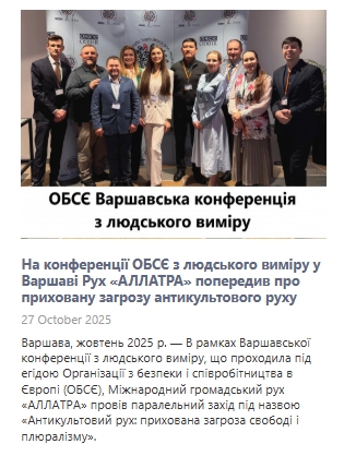 На конференції ОБСЄ та в конгресі США саме АЛЛАТРА викриває мережу агентів фсб РАЦИРС, яка створена для встановлення тотального контролю росії над людством. В рашці в них це вже майже вийшло.
